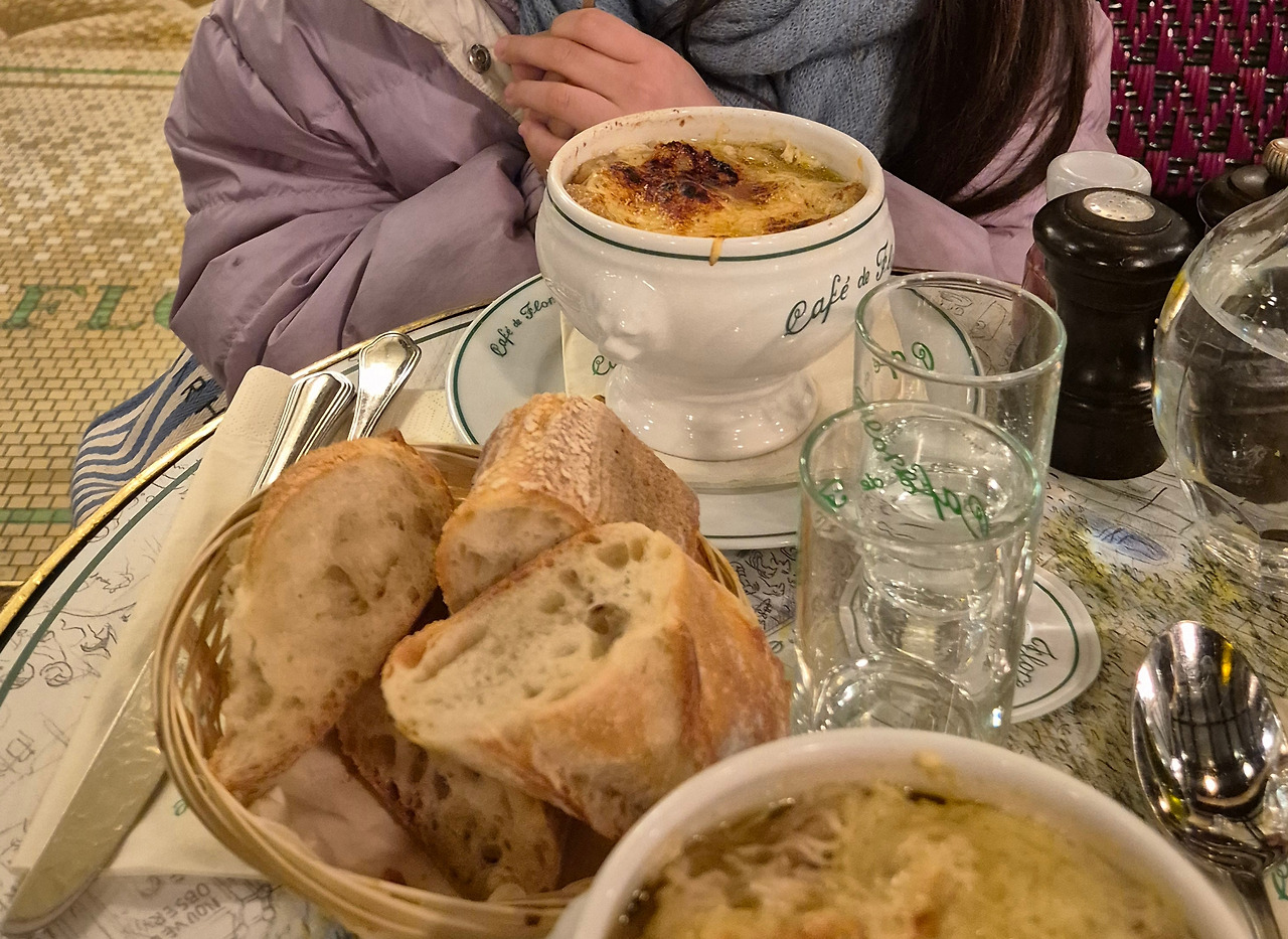 빵을 아무리 좋아한데도 매끼 빵을 먹는 건 좀 힘들었다. 본 식 없이 계속 후식만 먹는 느낌이랄까. 한국서 비상용으로 싸 온 라면이 가끔 느끼함에서 구원해 주었다. 때로는 겨울여행이라 스산한 바람과 추위가 몸속으로 스며들 때가 있다. 이럴 때는 뜨끈한 국물이 절실해진다. 이때 프랑스 사람들은 양파수프를 먹는다고 한다. 경험 삼아 한번 먹어보니, 양파로 낸 국물에 빵이 들어가 적셔져 있는 스타일. 따뜻해서 좋긴 했지만 뭔지 모를 아쉬움이 남는다.