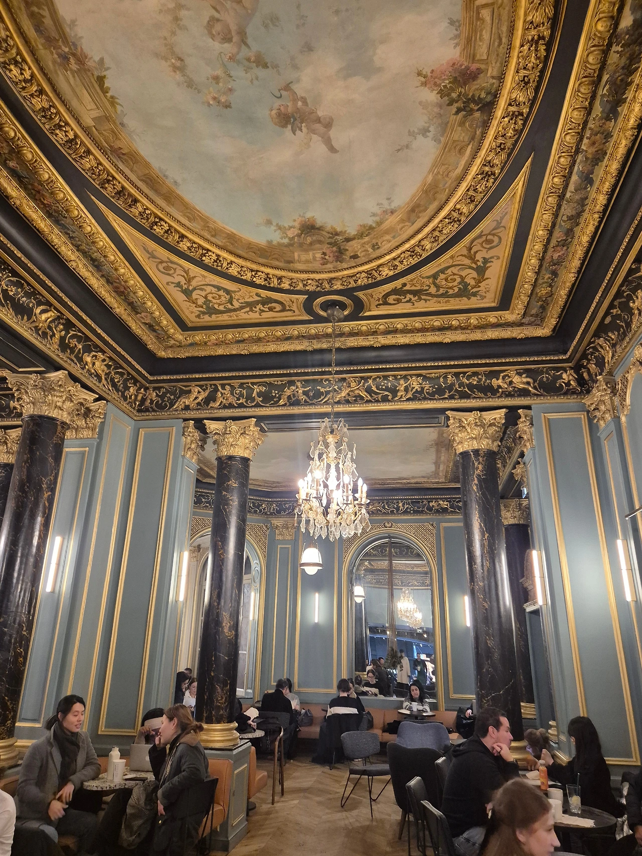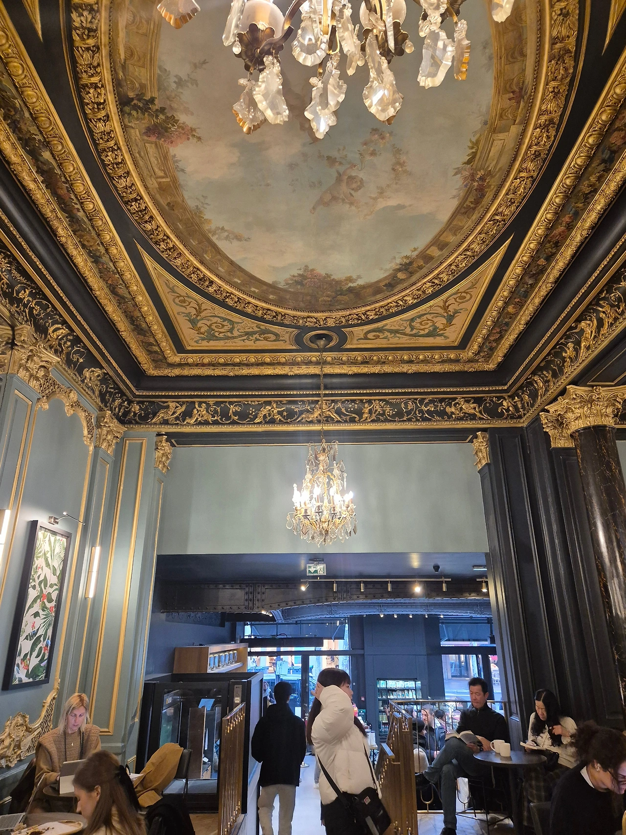 파리시내에 제일 처음 생긴 스타벅스 1호점은 특별한 인테리어로 유명하다. 파리시에서 절대로 건물의 형태나 내부를 변경하지 않고 스타벅스를 오픈할 것을 조건으로 허가를 해주었다고 한다. 까다로운 조건에 스타벅스는 골머리를 썼겠지만 실제로 본 그곳은 꽤나 멋진 인테리어로 마치 고대 프랑스 궁전에 와있는 느낌이었다. 고풍스러운 천장벽화와 우아한 인테리어 장식은 독특한 분위기로 인기몰이를 할 만했다.