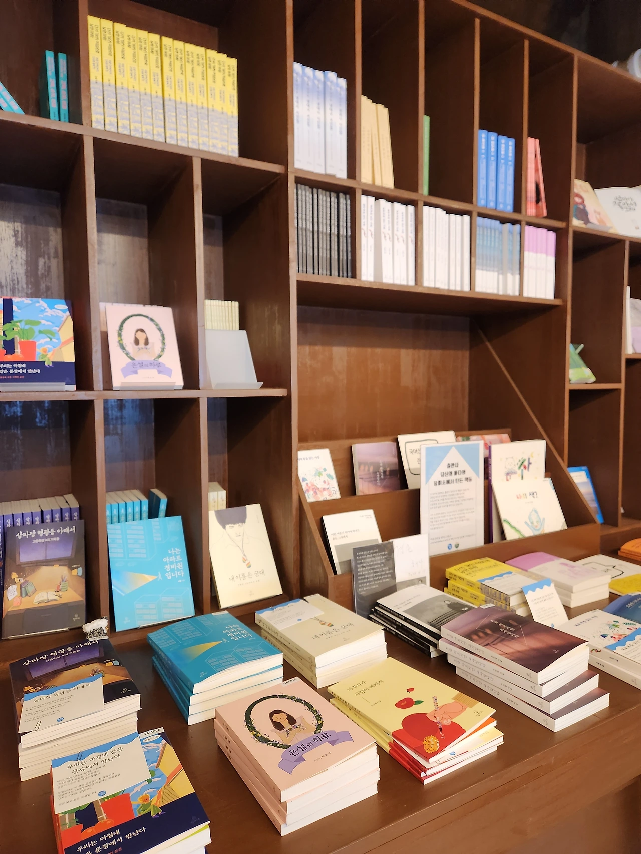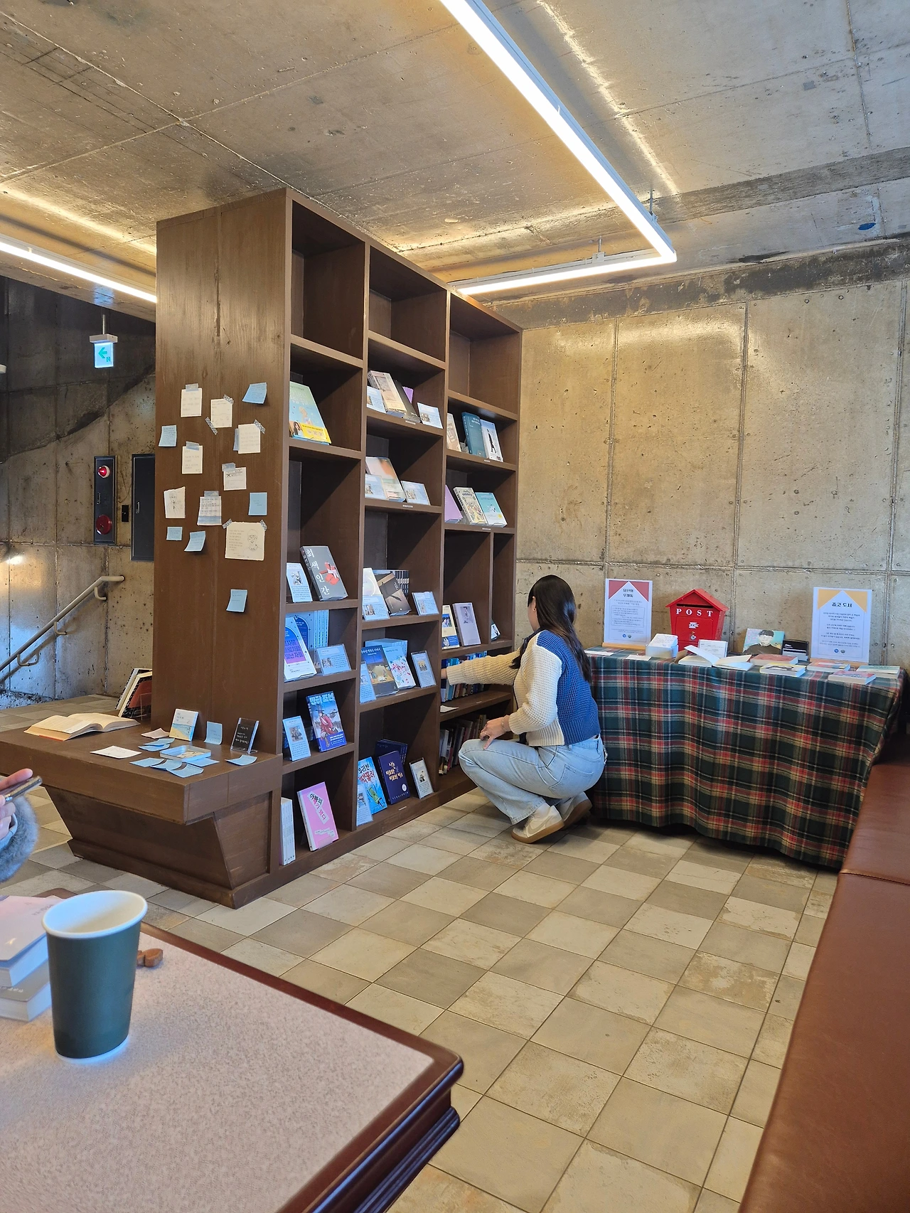친절하게 건물을 소개해주시고 앉을자리까지 안내해 주신다. 카페와 서점을 뛰어다니며 종횡무진 일하시는 그를 붙들고 싸인도 받고 싶고 여쭐 것도 있는데 잠시 시간을 내주실 수 있냐고 묻자, 우리가 10시에 온다고 해서 11시까지 시간을 비워놓고 기다렸는데, 지금 시간이 늦었으니 11시에 약속한 팀과 먼저 일 보시고 잠시 들러주신다고 하신다. 약속시간을 지키지 못해 급 미안한 마음에 죄송스럽다. 그래도 다시 뵐 수 있으니 고맙고 또 다행이다. 기다리는 동안 차도 시키고 서점과 카페도 구경하면서 여유로운 시간을 즐긴다.