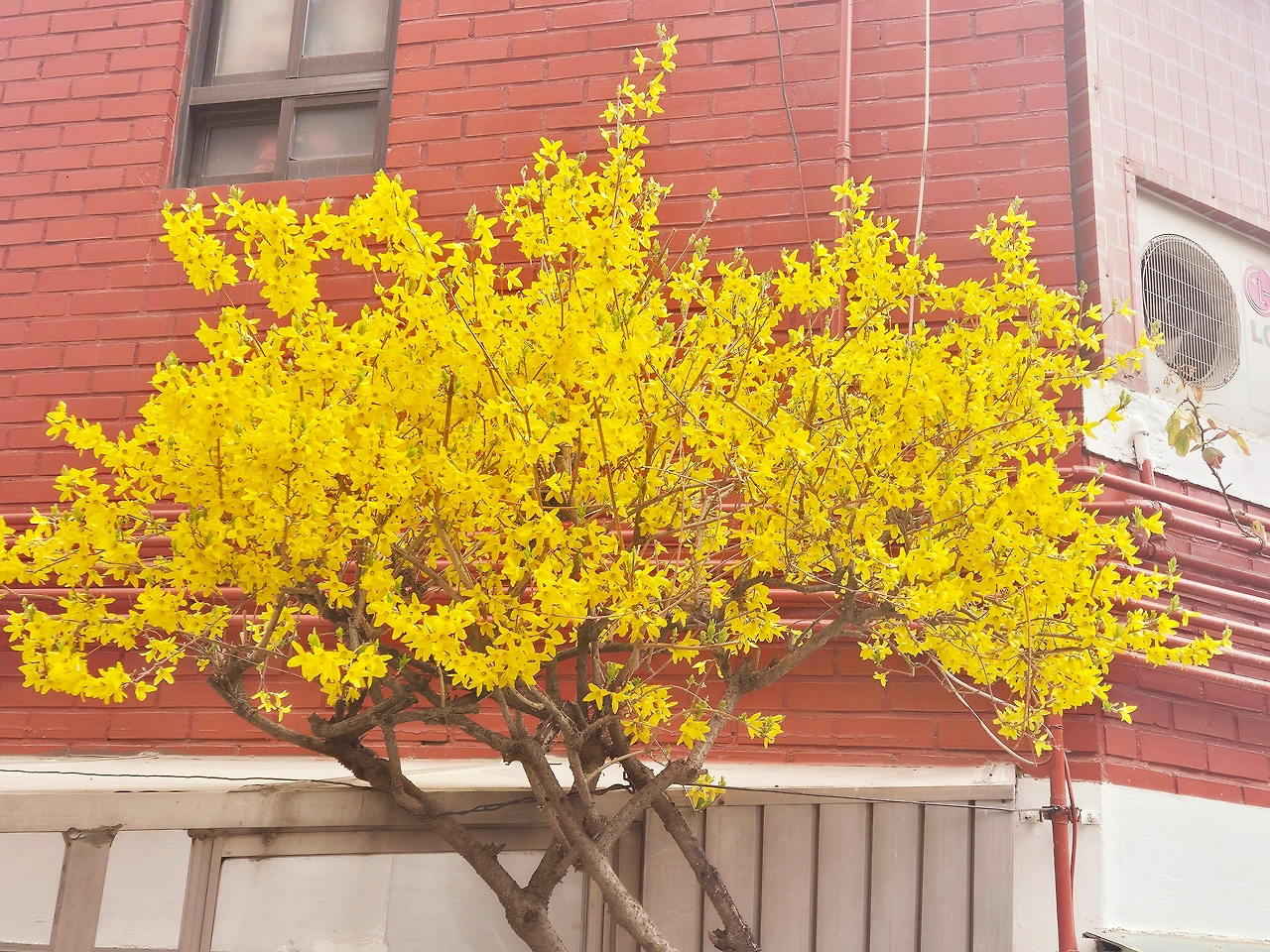 엊그제는 안 보이던 노란 개나리가 만개했을 때,