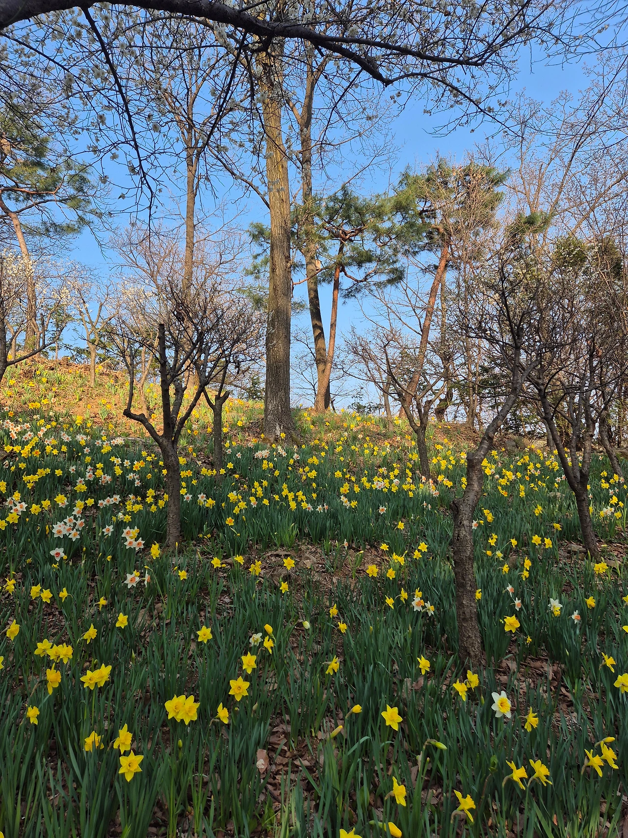 화담숲에 도착했다. 마침 수선화가 한창이다. 야트막한 언덕에 촘촘히 들어선 노란색 꽃잎이 도도하고 싱그럽다. 허리가 아픈 친구, 무릎이 불편한 친구. 아이고 아이고 하는 중년의 소리와 봄을 만끽하는 소녀의 탄성이 섞여서 호들갑스럽다.