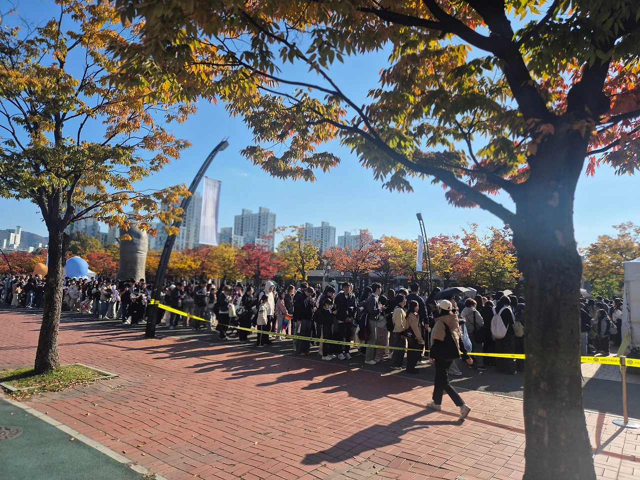 때 이른 추위에, 단풍이 이쁜 가을날, 남편은 긴 행렬에 줄을 섰다. 나는 근처 병원에 가서 재빠르게 침을 맞고 체력을 충전하고 뒤늦게 합류했다. 저 긴 줄에 서있는 사람들을 누군가의 아빠이고 또 엄마일 텐데 그들의 노고에 왠지 모를 동질감과 안타까움을 느낀다. 소시지에 핫도그에 간식을 공수해 남편에게 건네주고 길고 긴 대기를 이어갔다. 내가 줄을 서지도 않으면서 '이게 이럴 일인가'. 혼자 구시렁거려 보지만 이미 늦었다. 드디어 남편은 딸이 시킨 데로 이것저것 굿즈를 챙겨 사 왔다. 자랑스러운 그 모습에 딸은 열광하며 깡충깡충 버선발로 아빠를 맞이한다. 대기하면서 지켜보니 이 집이나 저 집이나 다 비슷한 풍경. 한 가족이 모두 동원되어야 가능한 초등학생들의 덕질이다.