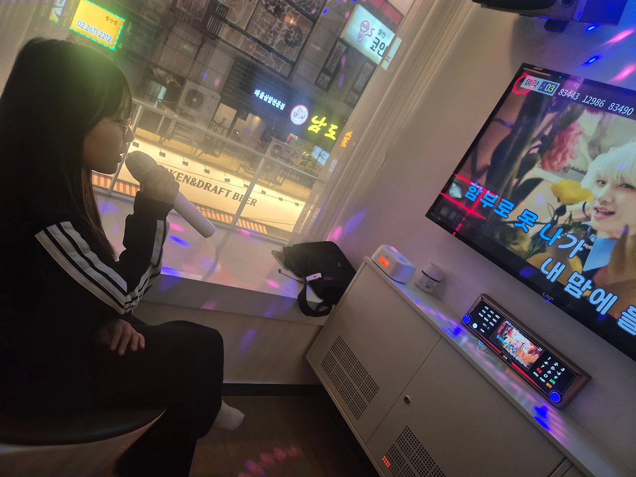 학생들이 주고객층이 코노엔 화장실, 욕실, 그네, 핑크 등등 다양한 컨셉의 노래방 부스가 있다. 막내는 화장실 컨셉 부스를 선택하고 신이났다. 변기의자에 앉아 열창하는 막내, 세상 모든 근심없이 그저 열창하는 그 모습에 고음불가이면 어떠랴. 아무생각없이 편하게 한 곡 부르면 그걸로 족하다. 막내랑 주거니 받거니 번갈아 노래하며 '40분에 5,000원' 소박한 즐거움에 푹 빠져본다.