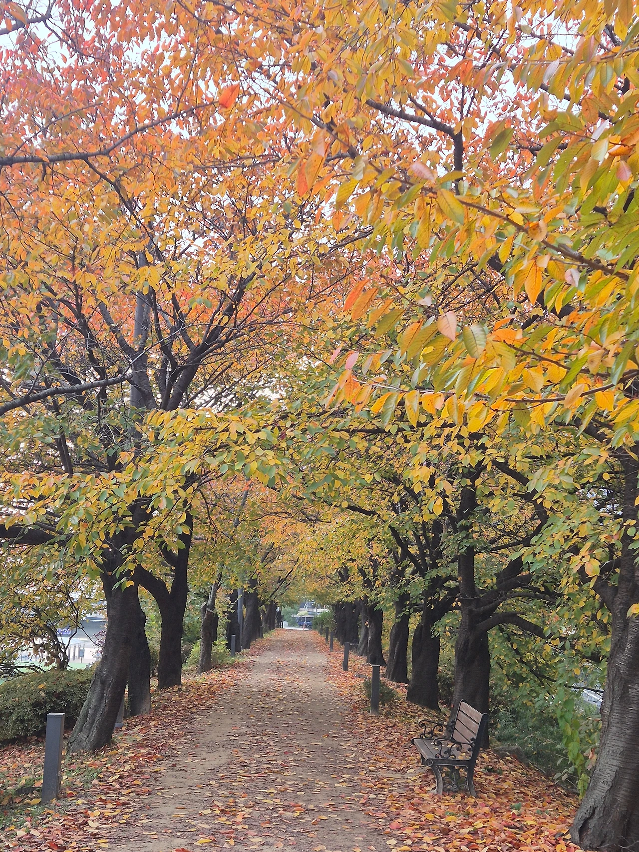 내 전략은 적중했다. 출근길 버스에서 이어폰을 끼고 노래를 들으며 감상에 젖고 버스에서 내려 학교까지 걷는 길에도 노래를 흥얼거린다. 단풍이 한창인 가을길을 걸으면 감성 가득한 무념무상, 최고의 힐링코스가 된다.