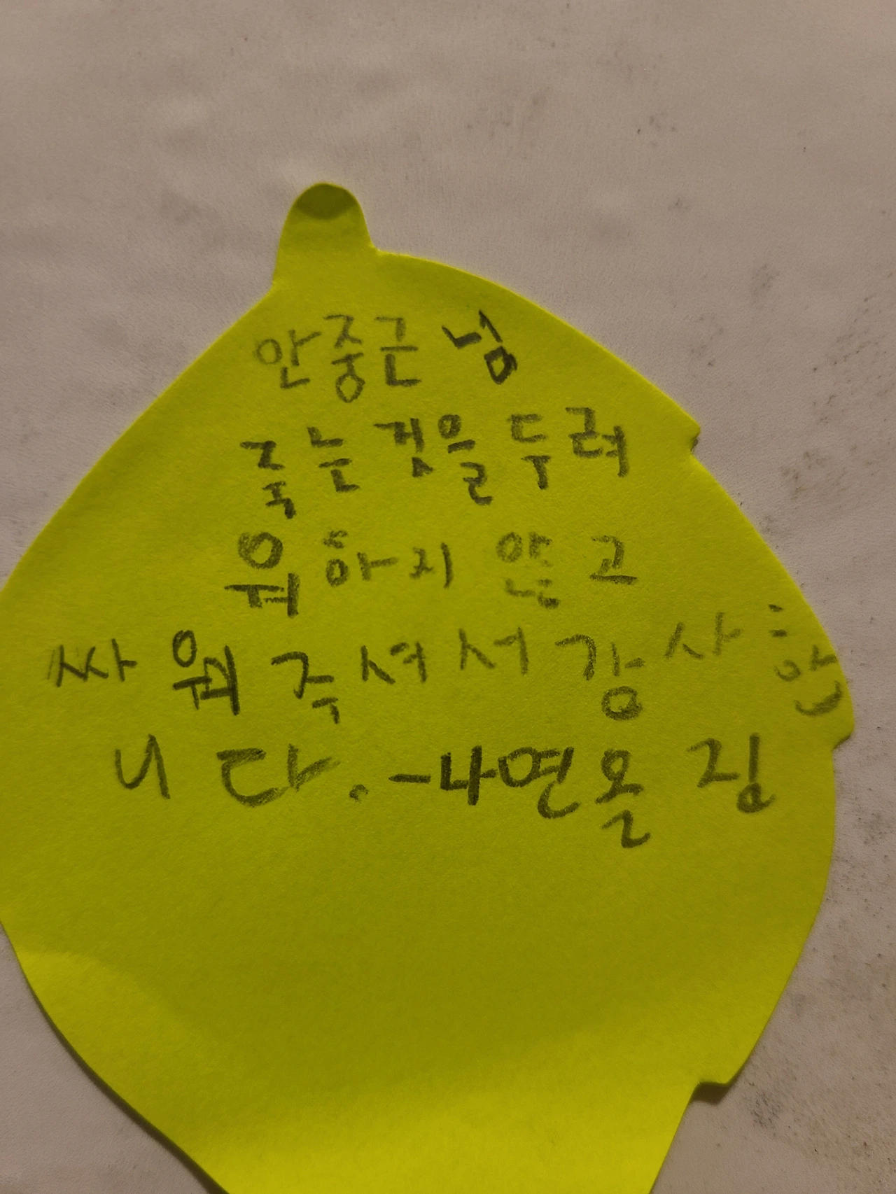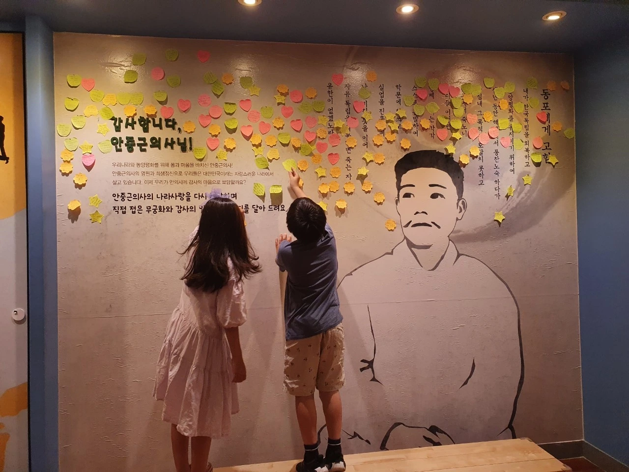 고사리손으로 적은 글귀가 삐뚤삐뚤하지만 대단하다. 이렇게 느끼고 적었다면 제대로 기념관을 관람한 게 아닐까. 책만 읽혀서 안될 때는 몸을 움직여 온몸으로 체험하는 게 백배 효과가 있을 때가 많다.