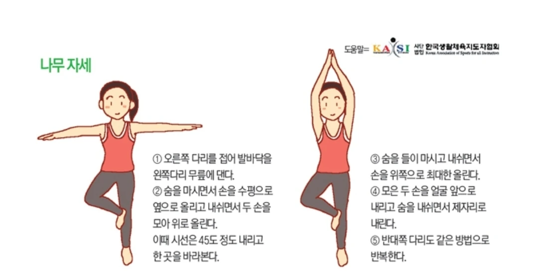 "그래. 어디 하는 줄 모르는 거니. 혹시? 그럼 우리 나무자세 도전!