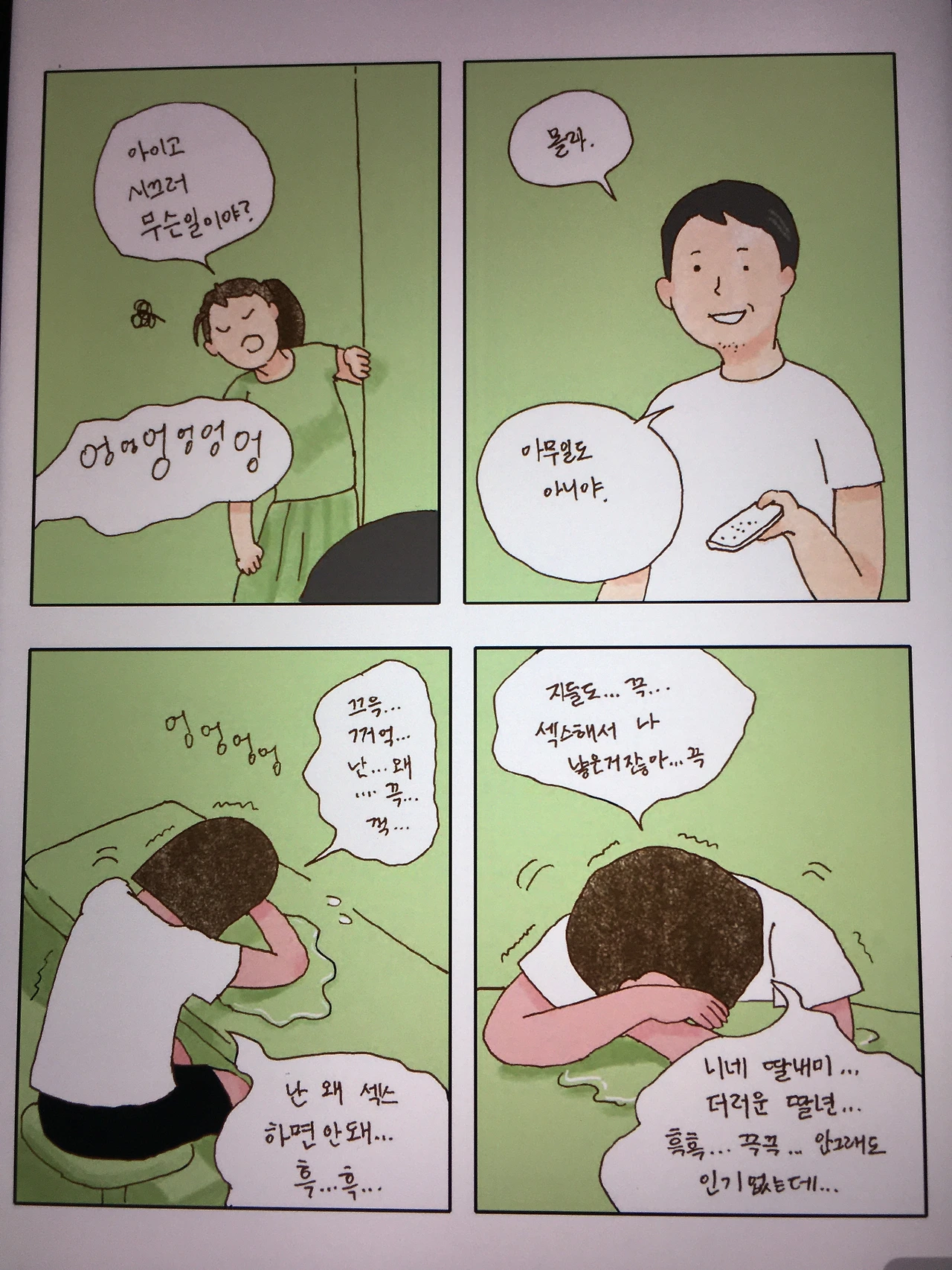 물론 허구와 사실의 영역이 모호한 자신의 경험이 100프로 일 수도 있는 만화인데 그럼에도 불구하고 내가 경험해본 적 없는 (호기심만 갖고 있던) 어린 여자애의 생활은 조금 웃기고 약간은 슬프고 가끔은 불편했다.