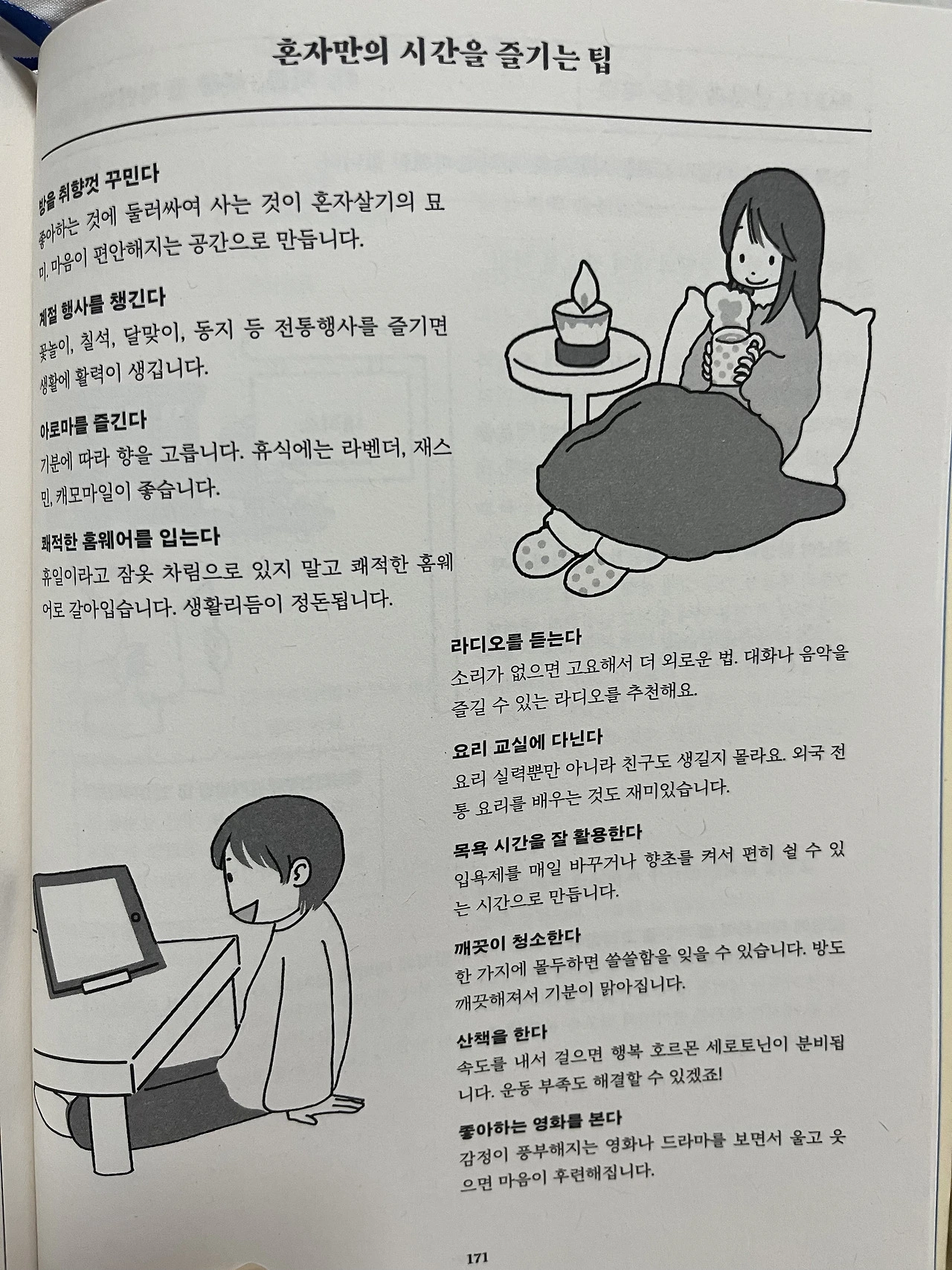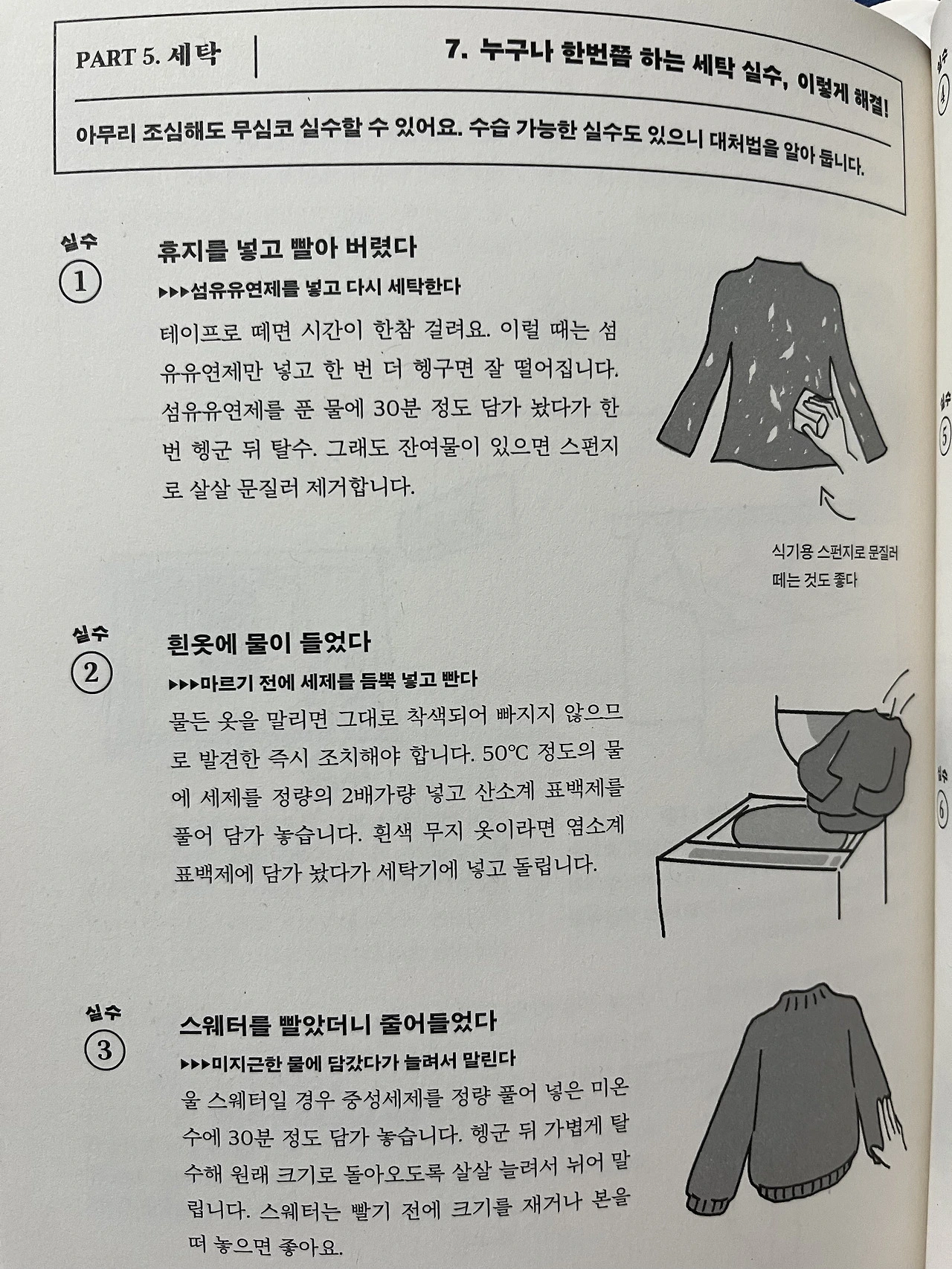 세탁, 정리, 요리까지 기본적인 살림에 대한 지식과 더불어 실수했을 때의 팁도 살뜰히 챙겼다. 일본책답게 디테일이 굉장함.