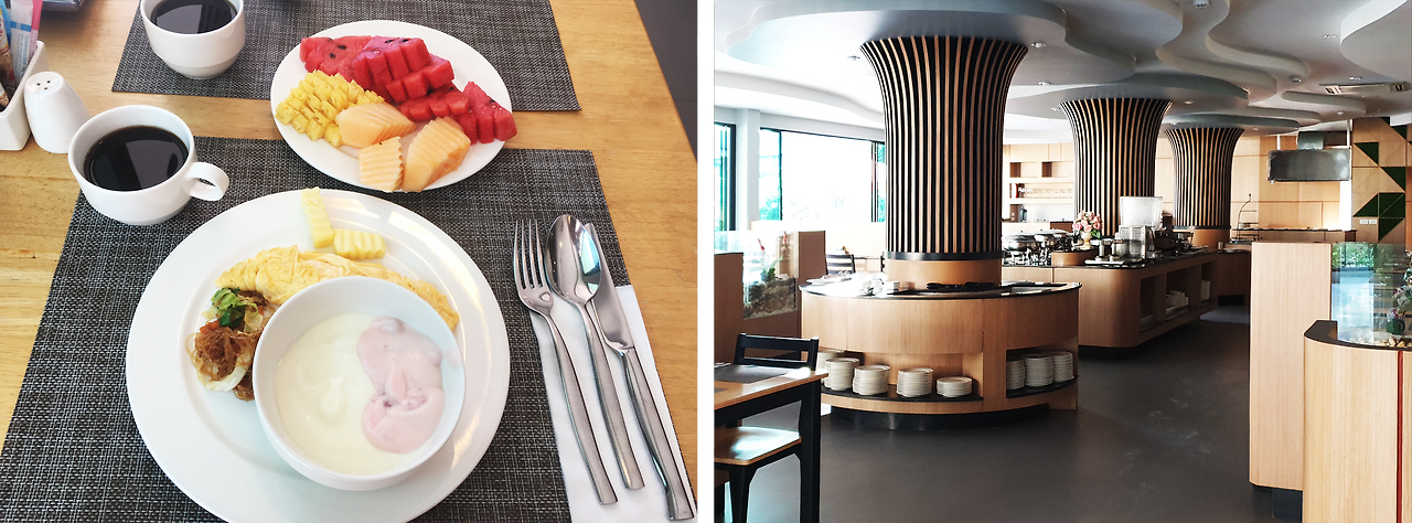 조식의 구성을 보니 역시 일관된 과일 사랑이 돋보인다. 더운 나라에서는 수분이 많아서 그렇게 느껴지는 것인지 오이도 맛있어서 챙겨 먹게 된다. 커피가 써도 먹고 싶어서 우유를 가져와서 섞어봤는데 별로다. 유나 님은 돼지고기, 닭고기를 잘 먹지 않는 나와는 달리, 가리는 음식이 별로 없으셔서 고루 드셨는데 거의 맛있다고 하신다.