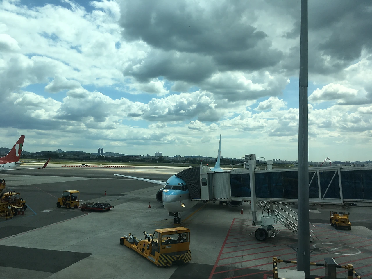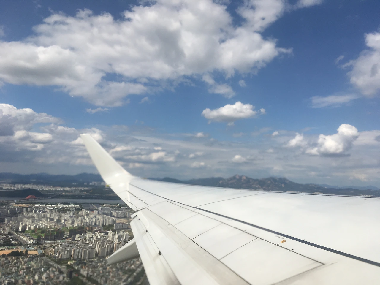 전날 모바일 체크인을 하고 김포 공항에 와서 수속을 하고 비행기를 타러 들어왔다. 날씨가 정말 좋고 구름이 많아서 맑은 하늘에 솜뭉치 같은 구름 더미들이 예쁘다. 예쁘면 사진이 찍어지기 마련이다.