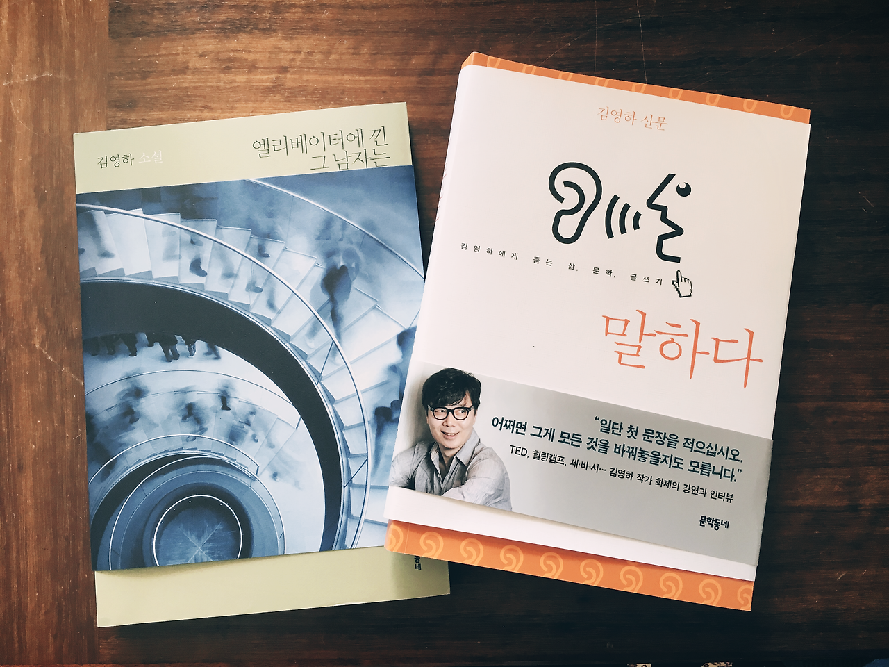 김영하 작가님의 산문 시리즈 중 인터뷰 내용을 모아 엮은 책 '말하다'가 요즘의 관심사 중의 하나인 글쓰기에 대한 이야기여서 그런 지 인상 깊었다. 글을 쓸 때는 오감을 이용해야 한다는 것, 때로는 시간 제약이 있을 때 글이 더 잘 써질 수도 있다는 것 등. 그리고 제목에 끌려 '엘리베이터에 낀 그 남자는 어떻게 되었나'를 읽었다. 오쿠다 히데오의 이라부 의사 얘기처럼 장난스러움이 느껴져서, TV에서 느껴지던 모습에서 조금 의외라는 생각이 들었다.