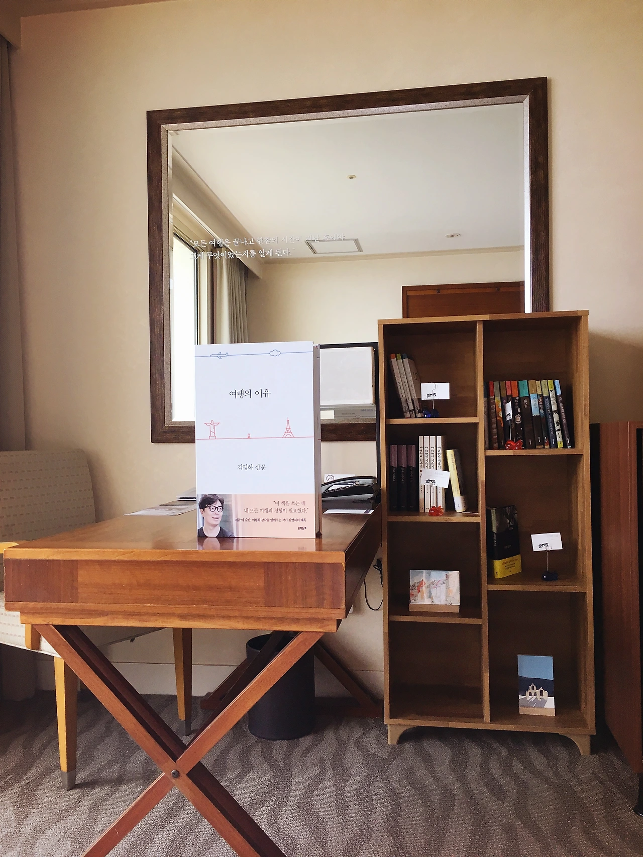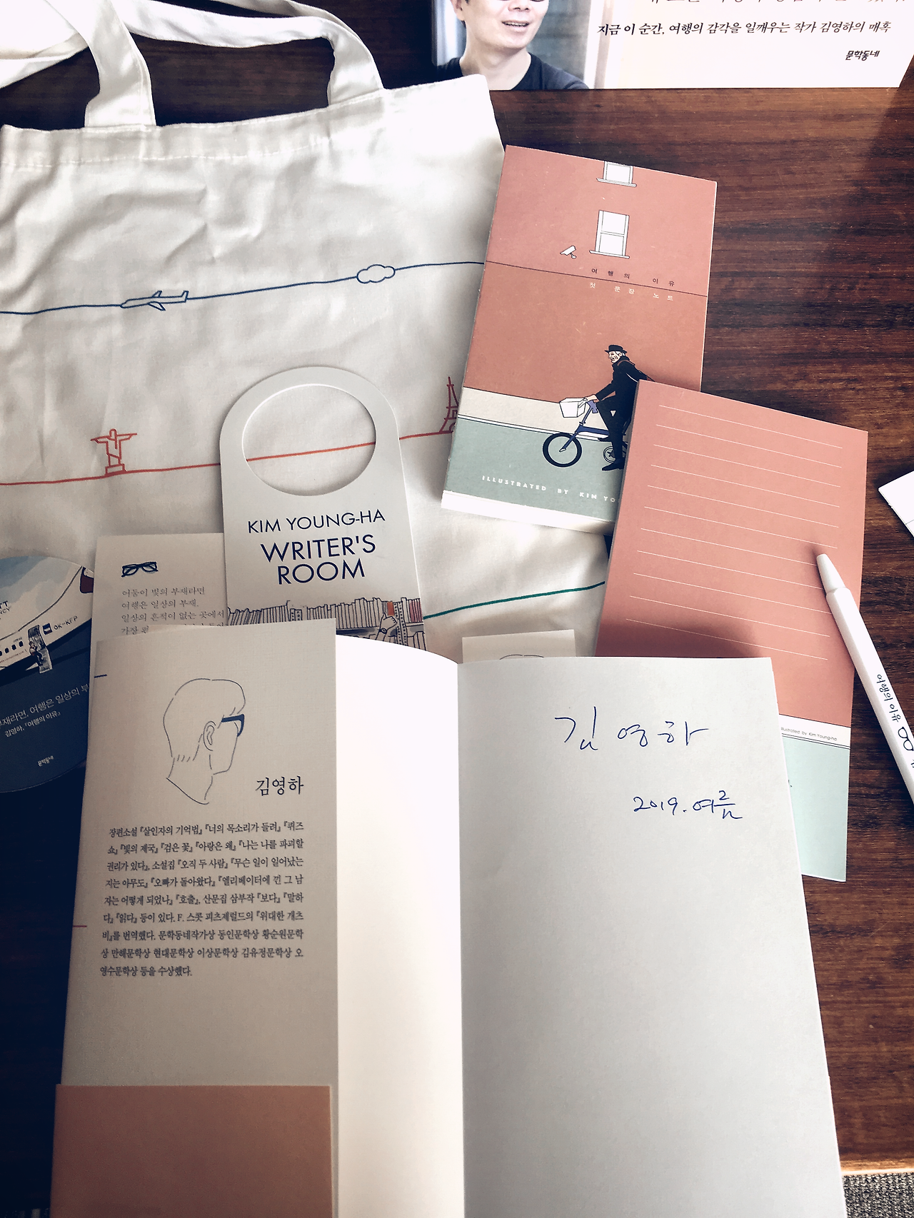 몇 주 전에 한 친구가 제주 하얏트 호텔에서 김영하 작가의 방으로, 책과 굿즈도 주는 이벤트를 하고 있다는 것을 알려주었다. 가고 싶었다. 가끔은 별 소득 없이 돈만 쓰는 것처럼 보여도 매우 하고 싶을 때가 있다. '여행의 이유' 책 하나가 갖고 싶은 것뿐이었는데, 이 책을 주는 호텔 이벤트를 보니 가고 싶어서 견디기 힘들었다. 매일 예약 페이지에서 가능한 날짜를 확인했었지만 결정은 하지 못했었다. 그런데 여기 제주에 와서 여름인데도 흐린 날씨로 물놀이를 못하게 되니, 며칠 더 있어야겠다고 생각했고 첫 숙소는 당연히 이 하얏트 호텔로 하게 되었다.