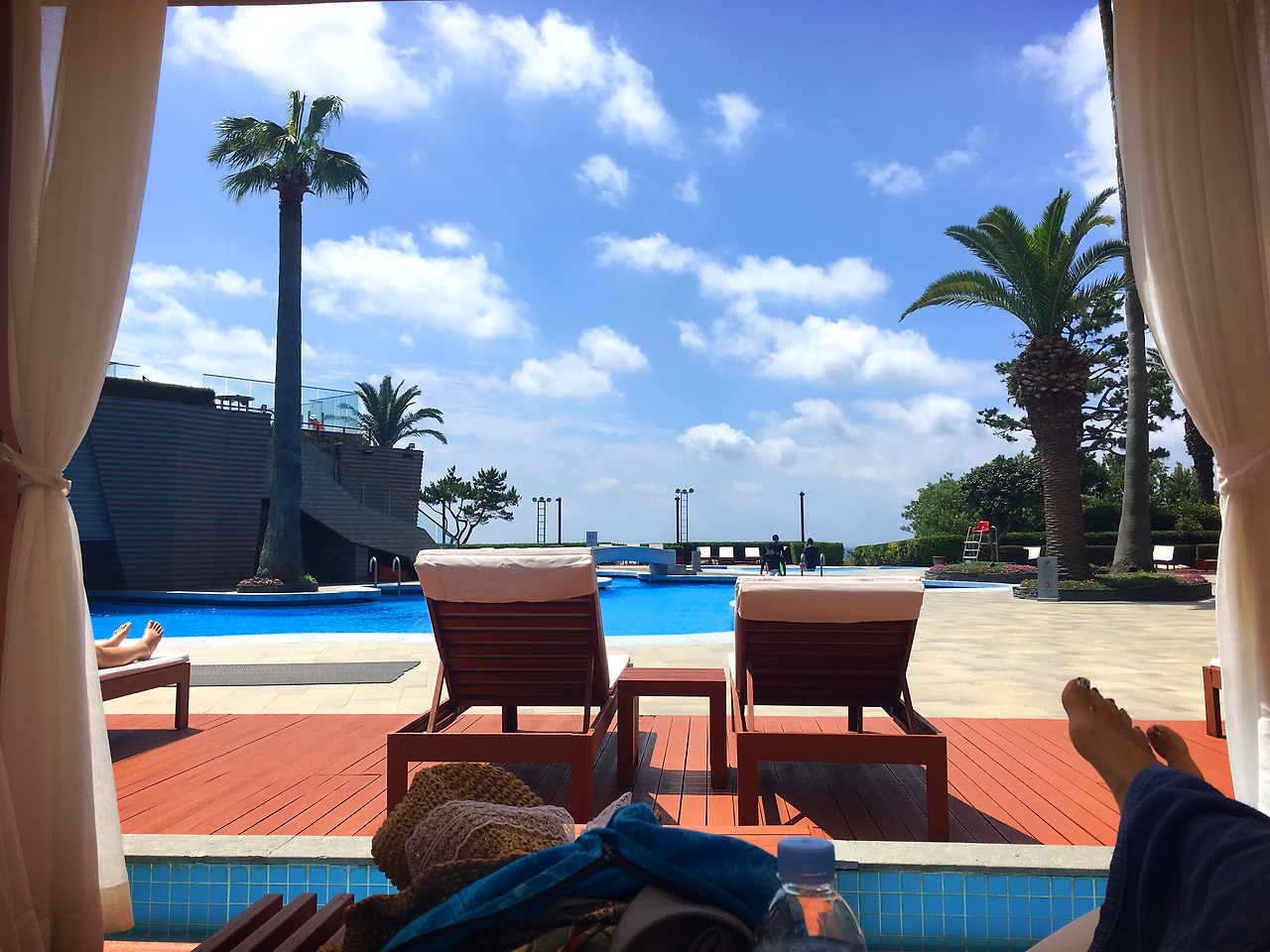 야외 수영장으로 오픈 시간에 맞춰 가보았다. 실내 수영장과 운동하는 곳을 지나 밖으로 나가면 자쿠지가 있고, 한층 내려가서 수영장이 있다. 적당한 곳에 자리를 잡고 수영장부터 들어가려는데 아침이여서 그런 지 너무 차갑다. 물에 허리가 닿기도 전에 나와서 방에서 가져온 책을 읽었다.
