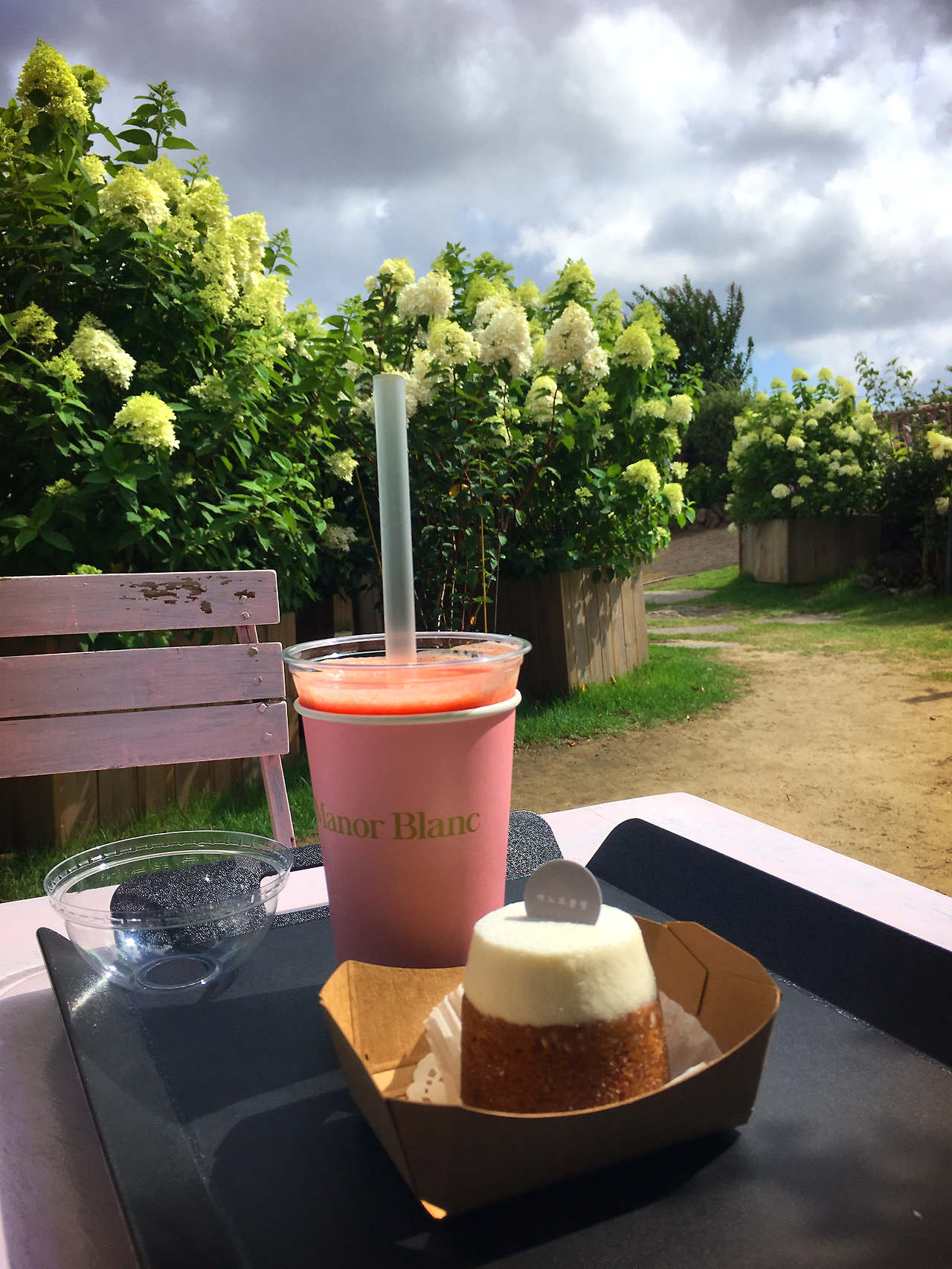 두어 번 바다 왼쪽에서 오른쪽으로 둥실둥실 물놀이를 마치고, 친구를 따라 수국이 예쁘게 피어있다는 카페 '마노르블랑'으로 이동한다.