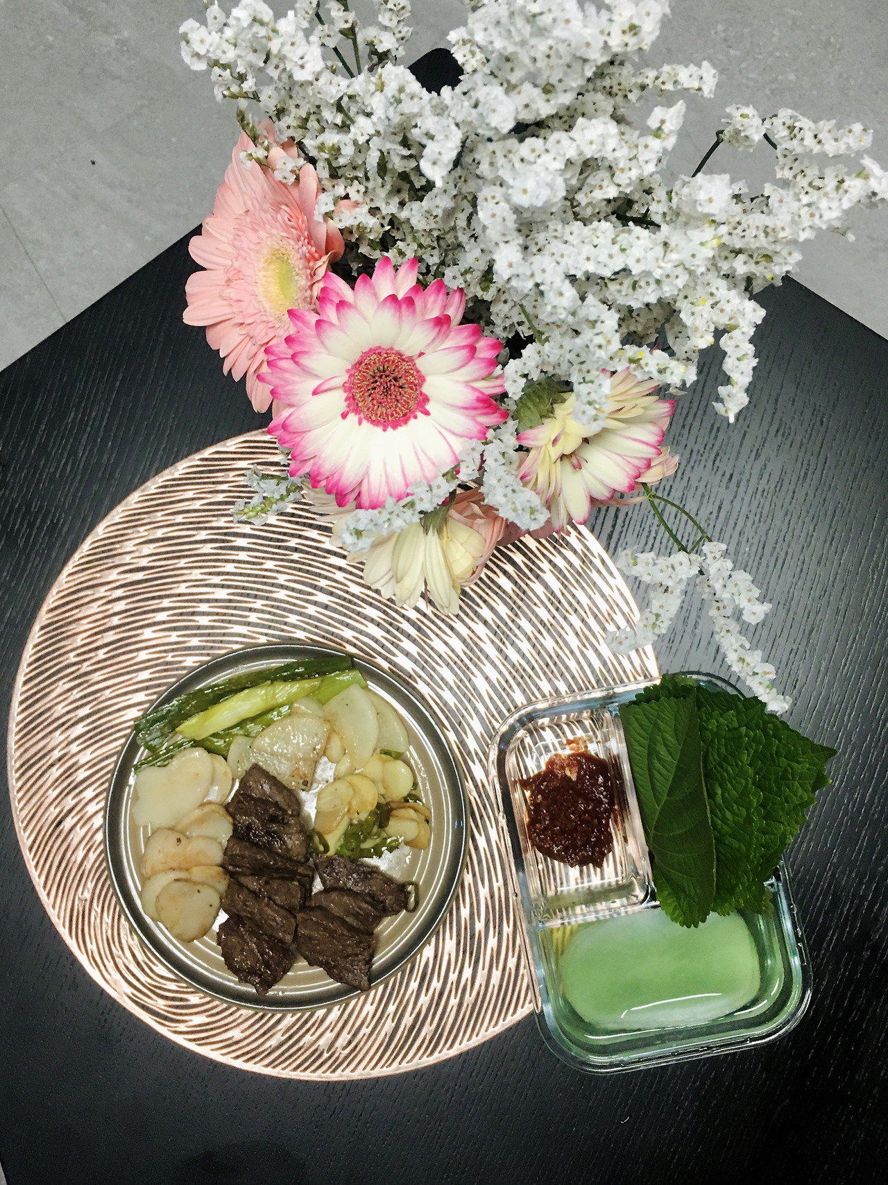 엄마 님께서 가끔 반찬과 음식 재료를 보내주신다. 반찬을 보기 좋게 옮겨 담고 고기는 굽고, 간단하지만 요리를 해서 테이블에 잘 정리한 후에, 인증 사진을 찍어서 보내드린다. 멀리 살고 있고 살가운 딸도 못되지만, 잘 살고 있다는 모습을 나름으로 공유드린다.