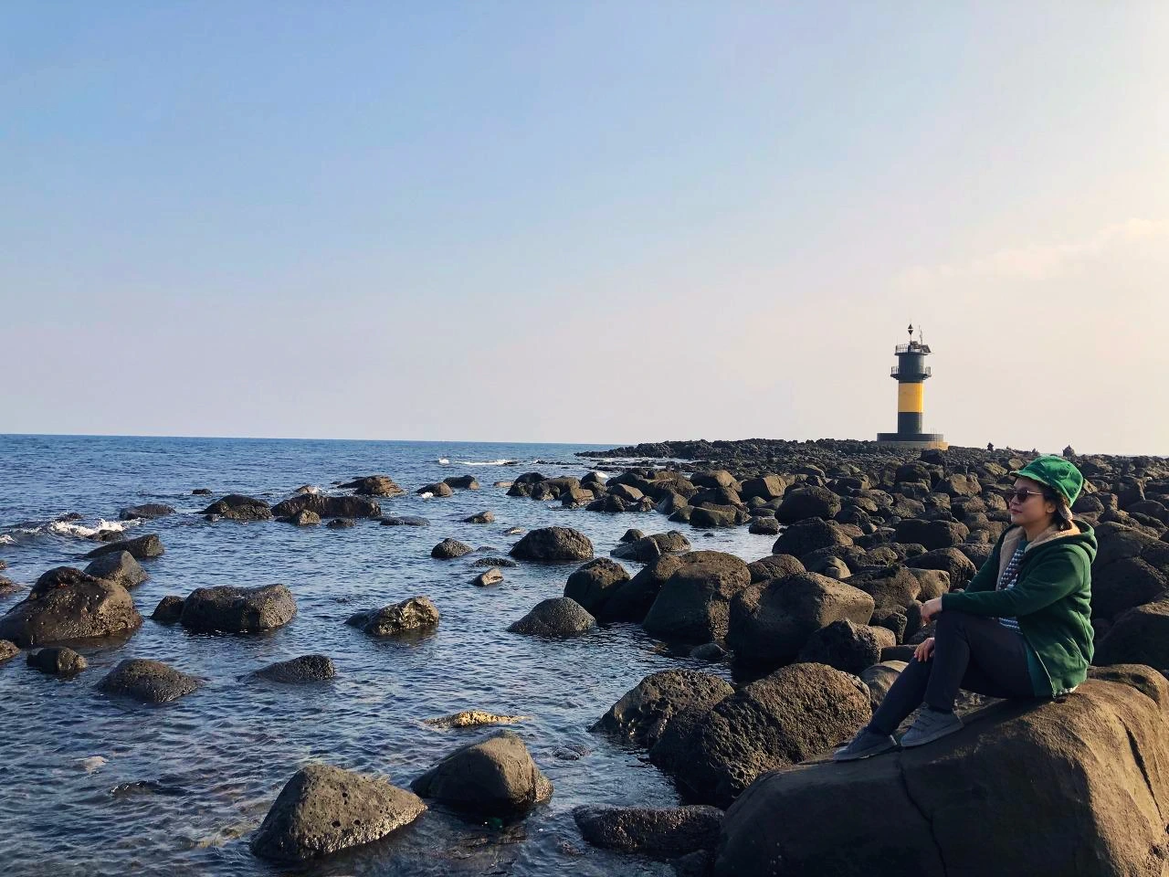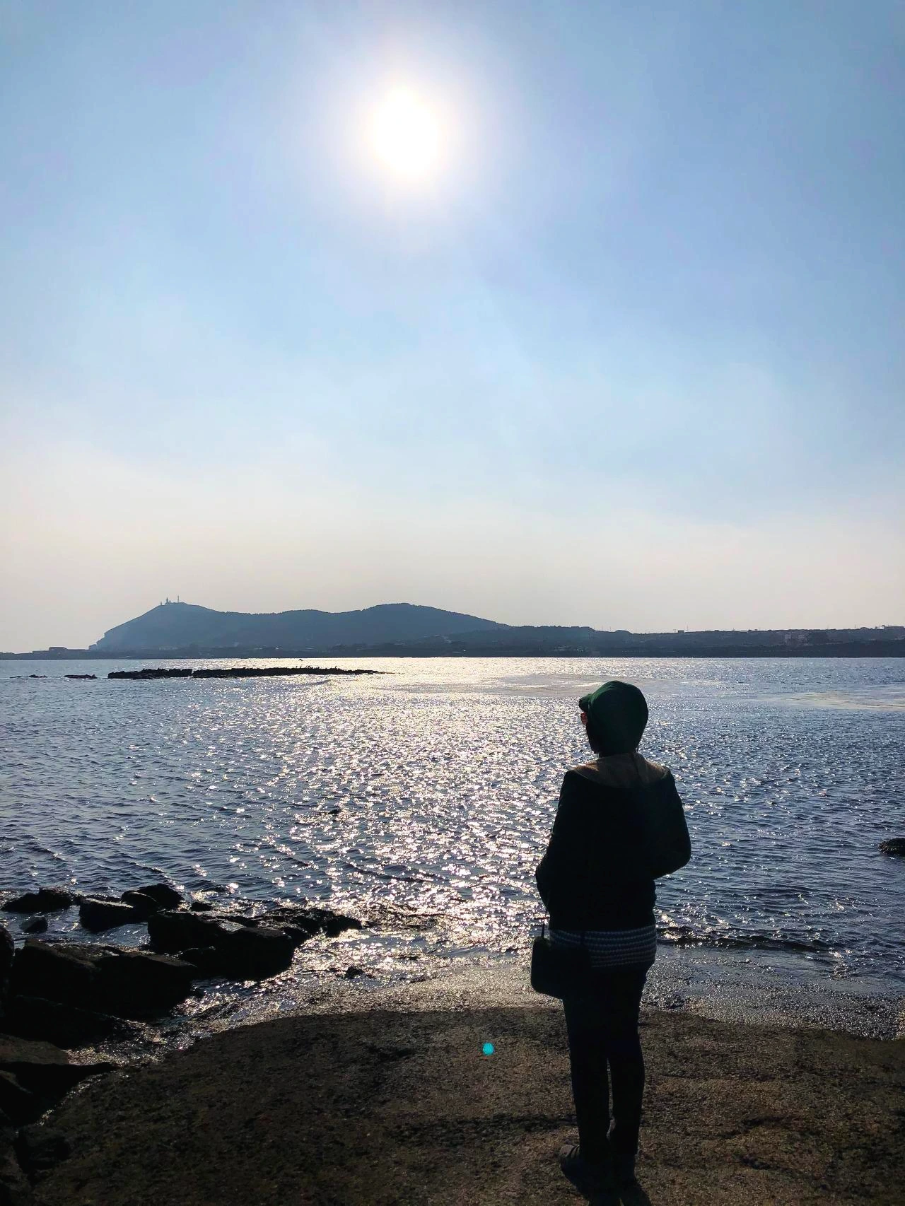 맑은 낮이지만 어쩐지 분위기가 고요하여 마음을 잔잔하게 앉혀준다. 몸도 바위에 앉히고, 가만히 주변을 바라보았다. 발아래 물은 아주 투명하고, 수평선은 겨울답게 차갑게 파랗다.