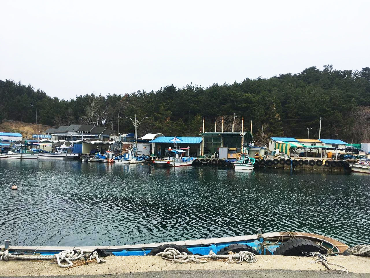 가는 중에 작은 만에 배들이 쉬고 있어서 차를 세웠다. 잠시 내려서 걸어보니, 조용하고 운치가 있는 포구 마을이다. 지난겨울에 갔던 제주도 구좌읍 시흥리가, 작은 만을 이룬 모양과 분위기가 비슷하여 머릿속에 떠오른다.