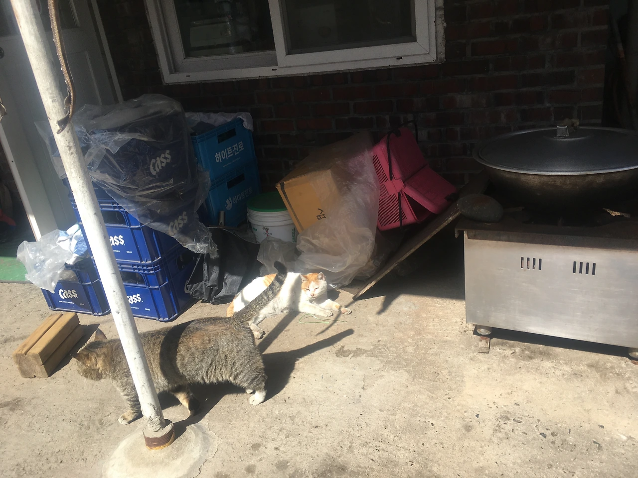 강변 옆에는 시장도 있는데 장날이 따로 있는지 상점들은 문을 닫았다. 동네 고양이분들께서 햇살을 즐기고 계셨다. 집이 있으신 분들 같긴 한데 외출 냥인지 동네 냥인지 알기 어려웠다. 조심스레 가까이서 인사를 드려본다.