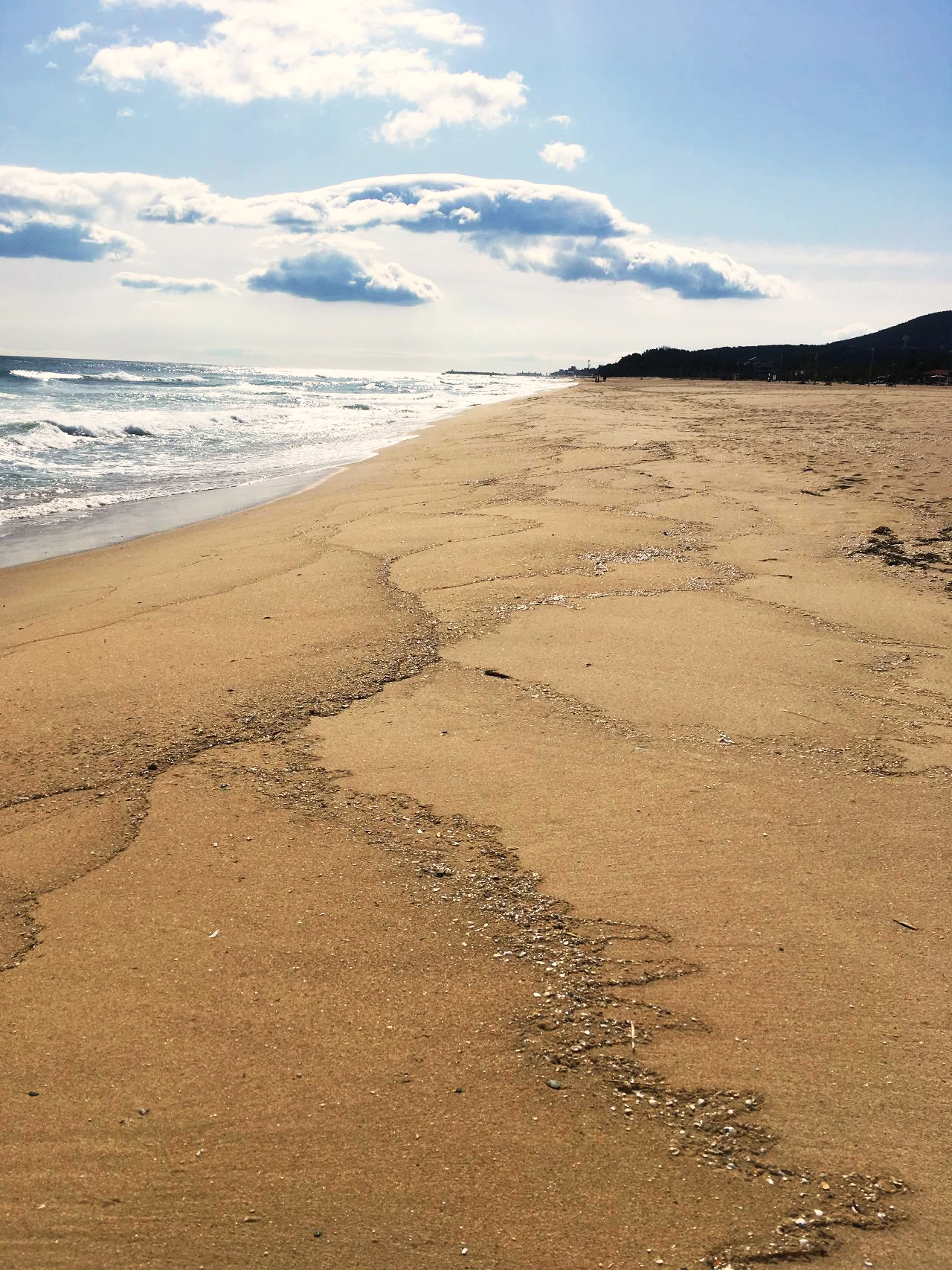 바닷가로 산책을 나와 걸어보기로 한다. 파도가 계속 모래에 인어공주의 다리 부분처럼 큰 조개껍질=스캘럽 모양을 만들고 있다. 파도와 모래와 조개껍데기의 알맞은 비율이 만들어낸 자연의 형태가 아름답다. 코가 막혔는지 바다 향은 생각보다 크게 나지 않는다. 지금 이 순간은 파도님이 전해주시는 감동만 주어질 뿐 아무 고민이 떠오르지 않는다.