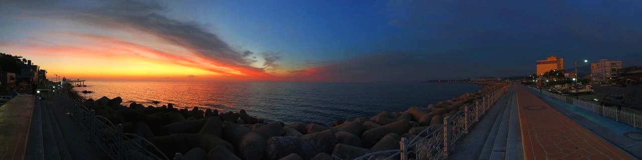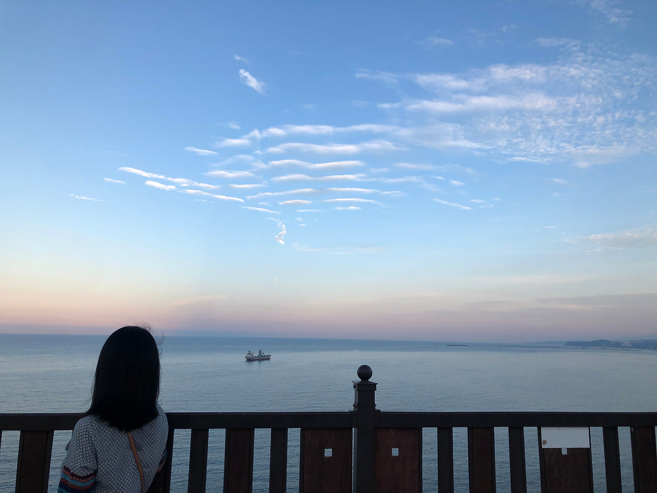 이 또한 보통은 있을 수 없는 일인데, 아침 일찍 눈이 떠져 그 김에 일어나 일출을 보러 가보기로 한다. 친구는 잘 자는 중이라 홀로 조용히 방을 나왔다. 구름이 살짝 있지만 가는 길에 펼쳐진 여명이 아름답다. 전망대는 아직 문을 열지 않아서 그 옆길의 높은 곳에 올라가 적당한 자리에 앉아서 감상하였다. 해가 뜨기 전 기다림은 예상보다 긴 시간이 걸렸지만 해가 떠오르기 시작하고 나서는 수평선에서 쑥쑥 빠르게 떠올라 갔다. 모두 건강하고 행복하기를 해를 바라보며 소원을 빌어본다.