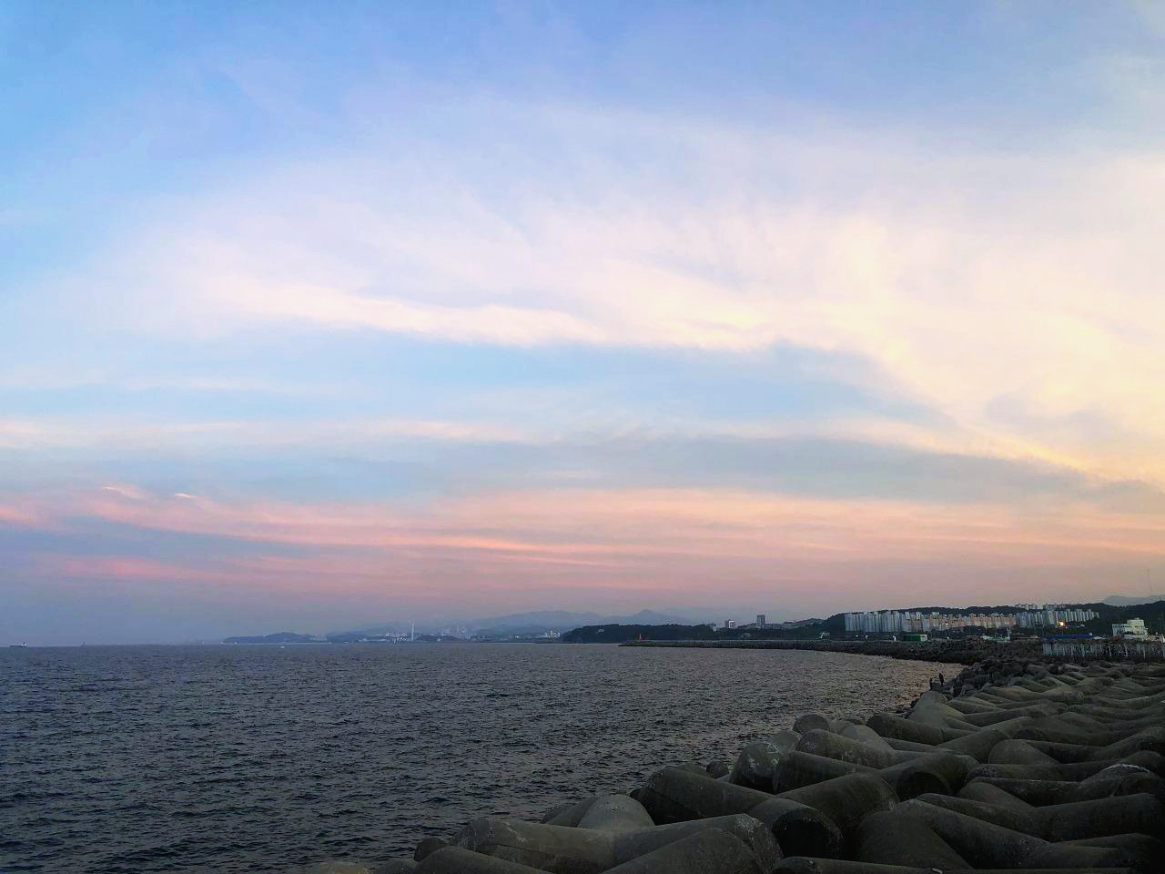숙소가 있는 곳이 동쪽이라 그런지 해가 지는 모습이 바로 보이지는 않지만, 임시 집으로 돌아오는 길마다 보이는, 한참 유행하던 팬톤 컬러의 조합처럼 분홍 빛이 도는 하늘이 아름답다.