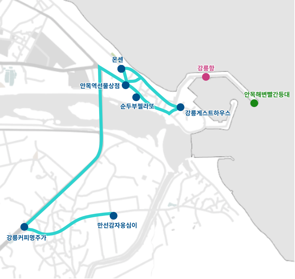 안목 해변과 골목 사이사이를 걸어 본다. 강릉과 안목 해변의 기념품을 파는 상점에 가서 구경을 하고, 꽤 길고 기대되는 여행을 앞에 두어 마음이 들떴는지 이것저것 사기도 했다. 산책로를 걸어 다니는 사람들, 물놀이를 즐기는 오리와 새들과 함께 걸으며, 이 동네 주민들의 예사로운 하루는 어떨까 짐작해본다.