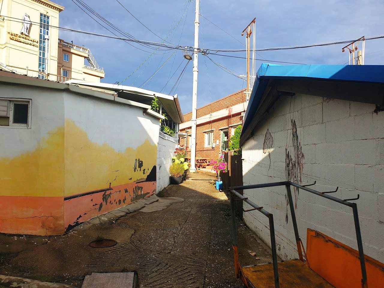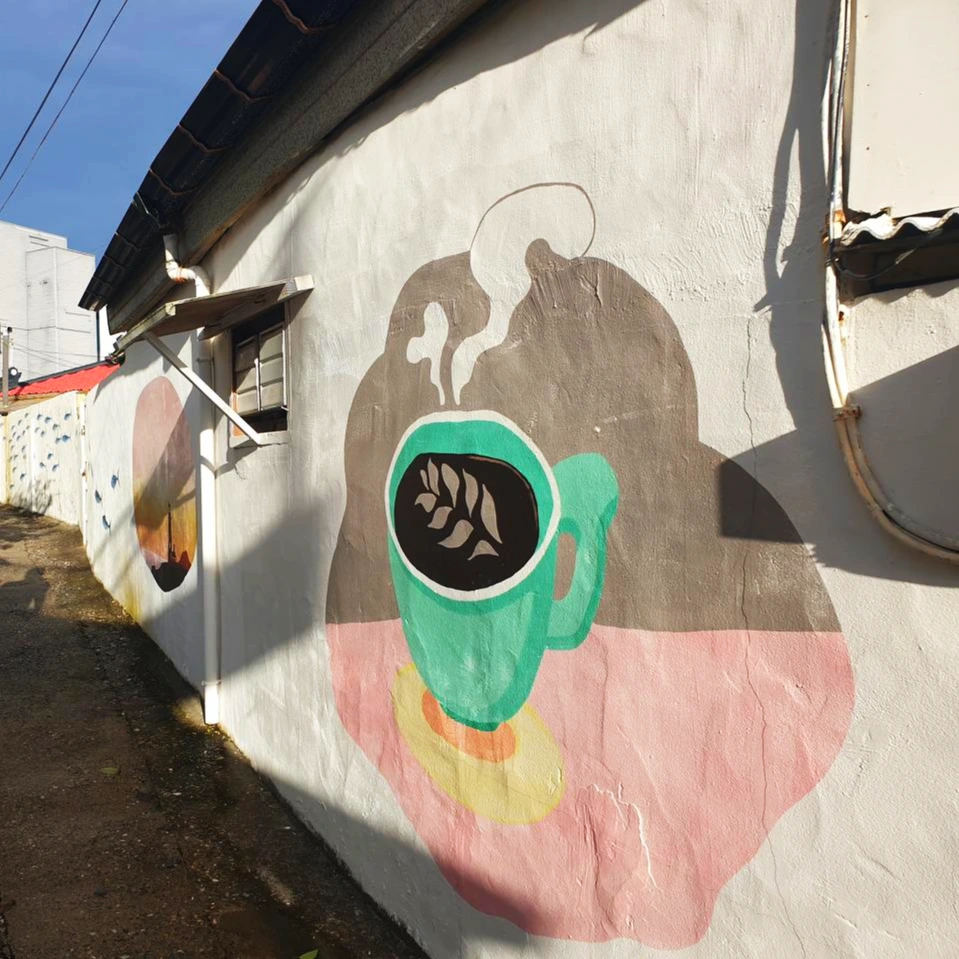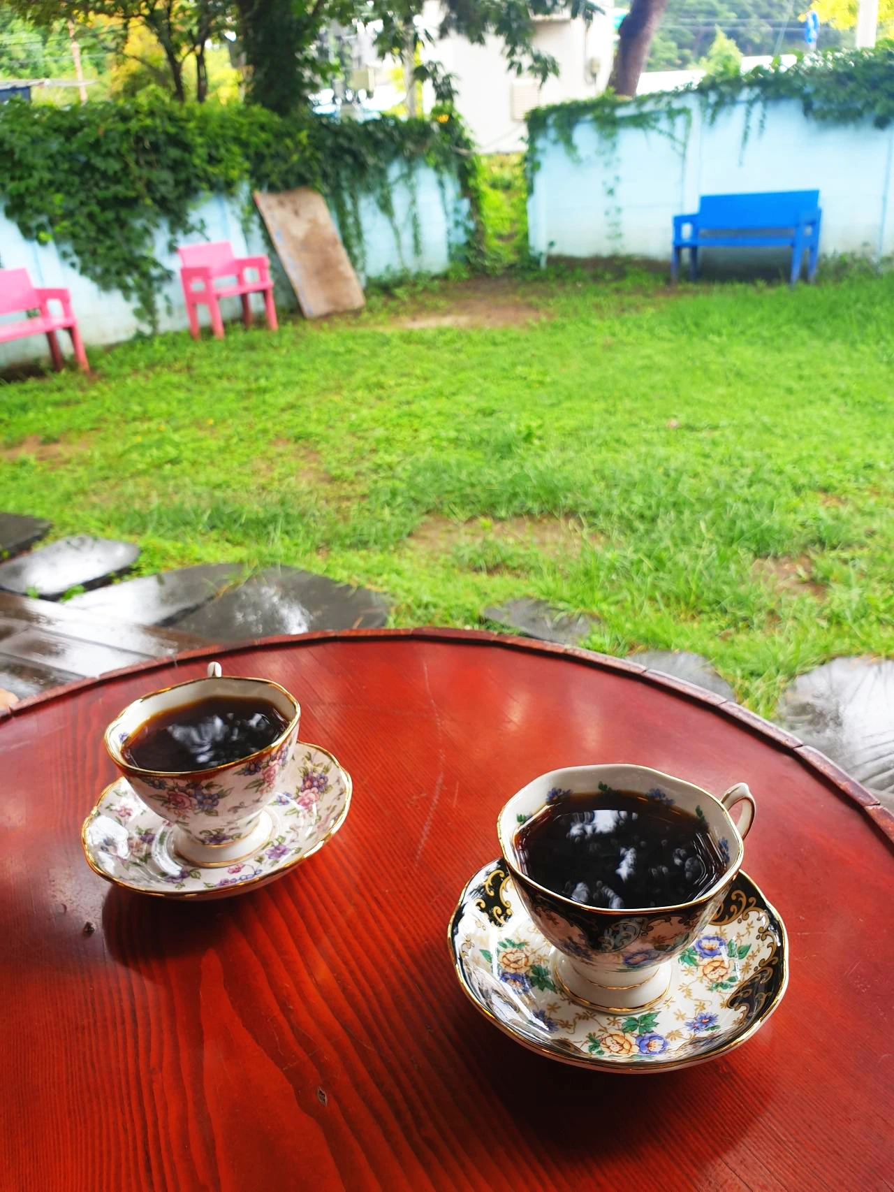 커피의 도시 강릉에 와서 커피 거리를 앞에 두고, 체인점 카페는 갈 수가 없다. 지나가는 길에 옛집을 개조한 듯한 어느 카페로 들어갔다. 소박한 작은 카페로 생각했는데 안으로 들어가니 마당도 있고 생각보다 크고 운치 있었다. 우리는 각자 취향에 맞는 스페셜티 커피로 주문을 했고, 마침 비가 그쳐서 바깥의 처마 아래 테이블에 앉아 커피를 마셨다. 비 온 뒤라 더욱 식물들이 생기 있어 보이고 이 순간 특유의 청량한 공기가 느껴져 좋았다. 담장 가장자리의 작은 틈으로 갑자기 사람들이 들어와 약간 놀랬는데 동네 분들이신가 싶다. 나도 다음에는 잘 아는 척 저 틈으로 들어와 봐야겠다.