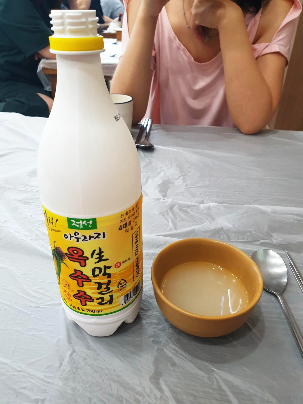 걷다 보니 감자옹심이 마을이 있다. 강릉에 여러 번 와서 조금 친근해졌다 생각했는데 옹심이 마을은 초면이라 다시 조금 낯설어진다. 길가의 한 식당으로 들어가 점심 식사로 장옹심이와 감자전을 먹었다. 감자 옹심이와 장칼국수는 먹어봤는데 둘이 합쳐진 듯한 장옹심이는 또 처음 본다. 걸쭉한 감자 옹심이에 매콤함이 추가되어 한국적으로 맛있고, 감자전 또한 어김없이 맛있다. 옹심이 마을이라 할만하다. 언제부터인지 지역 막걸리가 보이면 쉽게 지나칠 수 없게 되었다. 강릉의 것은 아니지만 '정선 아우라지 옥수수 막걸리'도 한 병 시켰다.