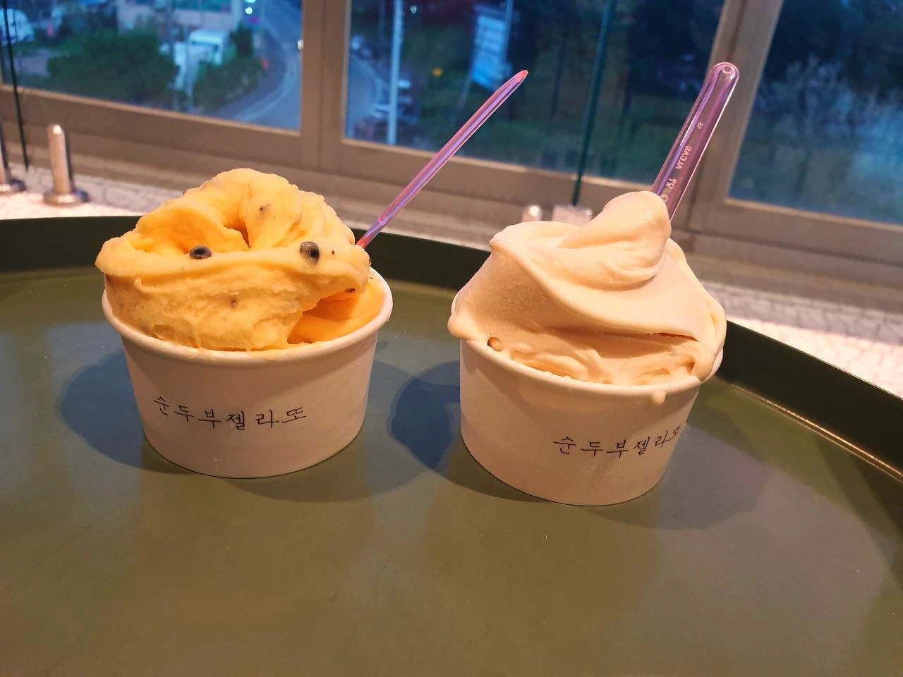 초당순두부 거리에서 먹었던 '순두부 젤라또' 분점이 여기에도 있었다. 가게의 내부와 외부가 넓고 트여 있어서 좋았고, 젤라또의 맛도 여전히 좋았다.