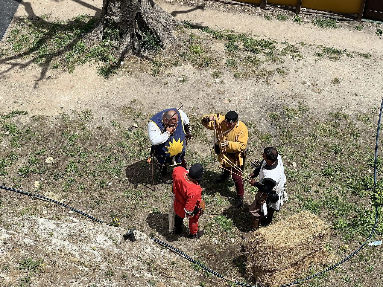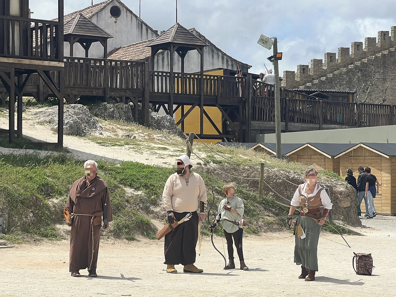 이렇게 많은 사람들이 모여서 중세 시대 옷을 갖춰 입고 무기를 들고 무리 지어 다닐 수가 있나? 어리둥절하며 둘러보며 다니고 있는데 어떤 곳은 들어가지 못하게 막기도 하고, 여럿이 모여있는 곳을 보면 짚 더미나 돼지 모형 등에 활을 쏘고 있었다.