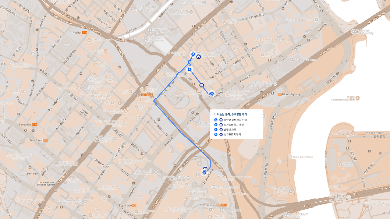 여러 직접과 간접 경험들로 그러한 생각이 있던 와중에, 이번에 친구가 가족과 싱가포르로 자유 여행을 간다 하여 조금 염려스러웠다. 모두 직접 가본 것을 아니지만 나름의 생각으로 4박 5일 추천할 만한 일정을 만들어 보았다. 제일 우선으로는 대체로 많이 덥기 때문에 동선이 짧고 이동이 편하도록 하였다. 그리고, 다문화 국가이기 때문에 하루에 한 가지 문화 테마를 가지는 것으로 하였다.