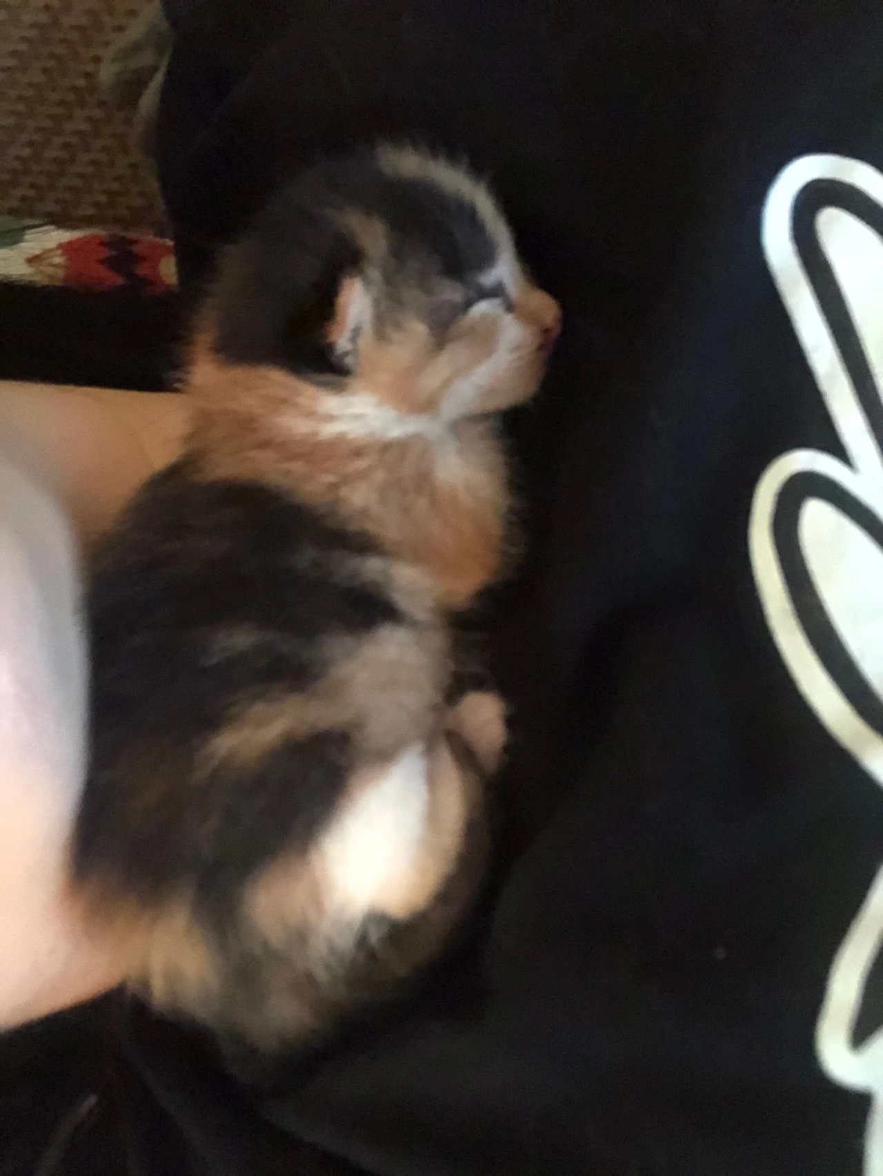 부모님 댁에 도착하니, 체크무늬 담요 위에 손바닥만 한 눈도 뜨지 않은 삼색이가 누워있었어요. 낮게 숨을 쉬고 있었는데, 5-6시간 동안 밥을 먹지 못한 상태라 했어요. 서둘러 분유를 타 와 먹였어요. 아기 고양이는 젖병이 낯선지, 젖병을 빨지 못했어요. 그런데 입에 우유를 흘려주니 꿀떡꿀떡 삼켰어요. 걱정을 많이 했는데 우유를 잘 먹는 것을 보니 안도감이 들었어요.