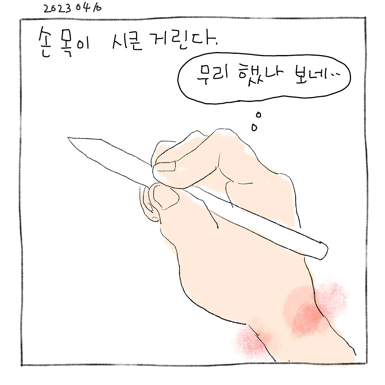 손목 통증이 심해졌어요 …..그런데 통증이 오는 것도 나쁘기만 한 건 아니네요. 내가 쉬어ㅑ 한다고 내 몸이 보내는 신호였네요…쉬엄쉬엄 가겠습니다.