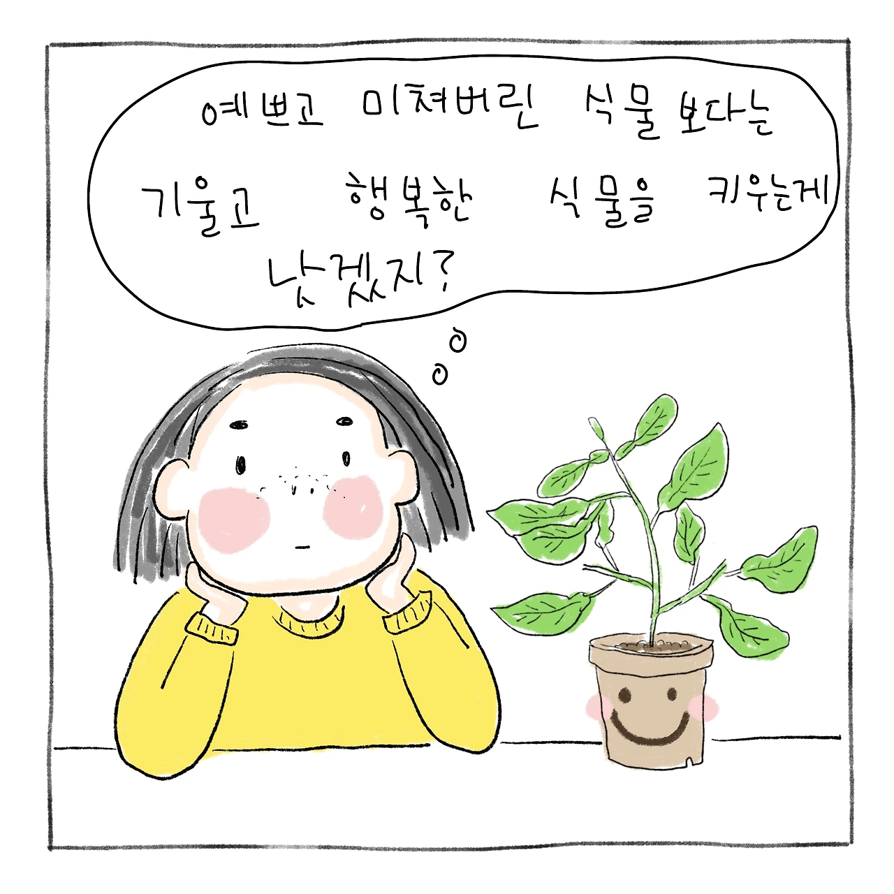 " 예쁘고 미쳐버린 식물보다는 기울고 행복한 식물을 키우는 게 낫겠지?"