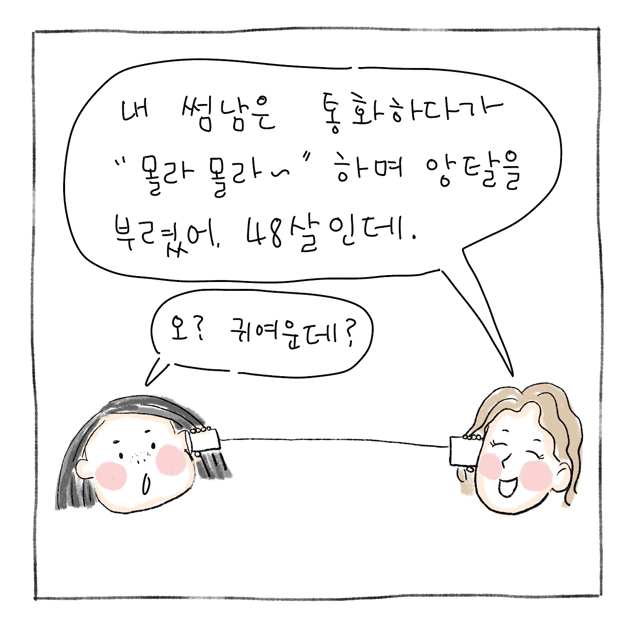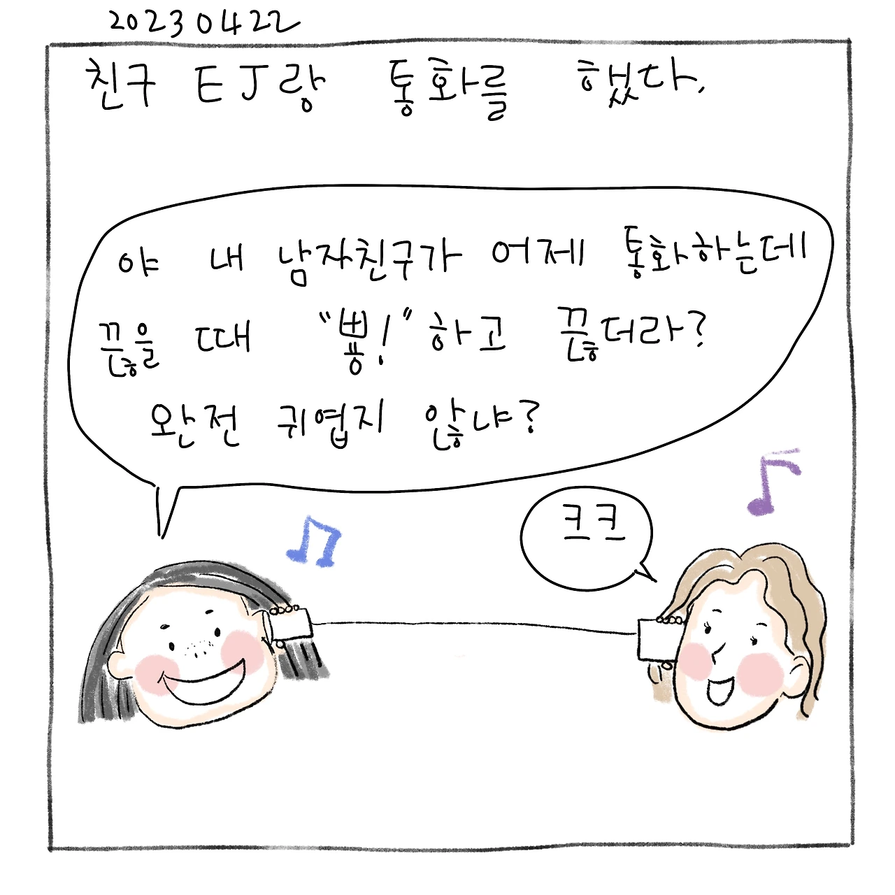 “ㅑ 내 남자친구가 어제 통화하는데 끊을 때 뿅! 하고 끊더라? 완전 귀엽지 않냐?”