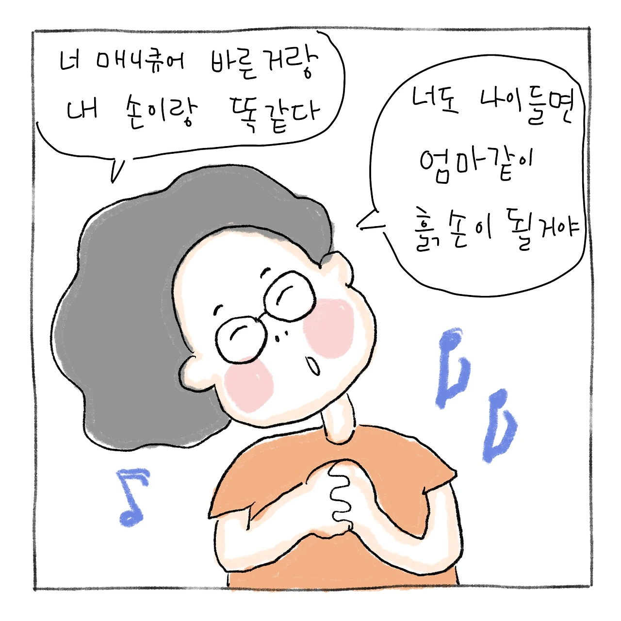“너 매니큐어 바른거랑 내 손이랑 똑같다. 너도 나이들면 엄마같이 흙손이 될 거야”