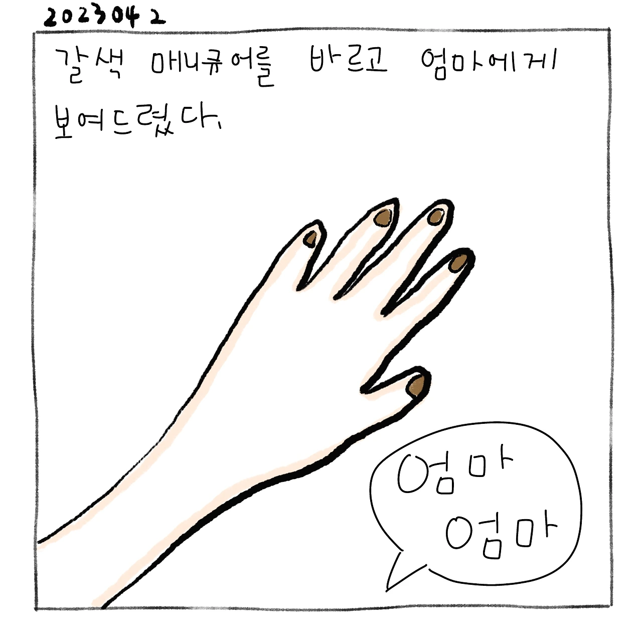 갈색 매니큐어를 바르고 엄마에게 보여드렸다.