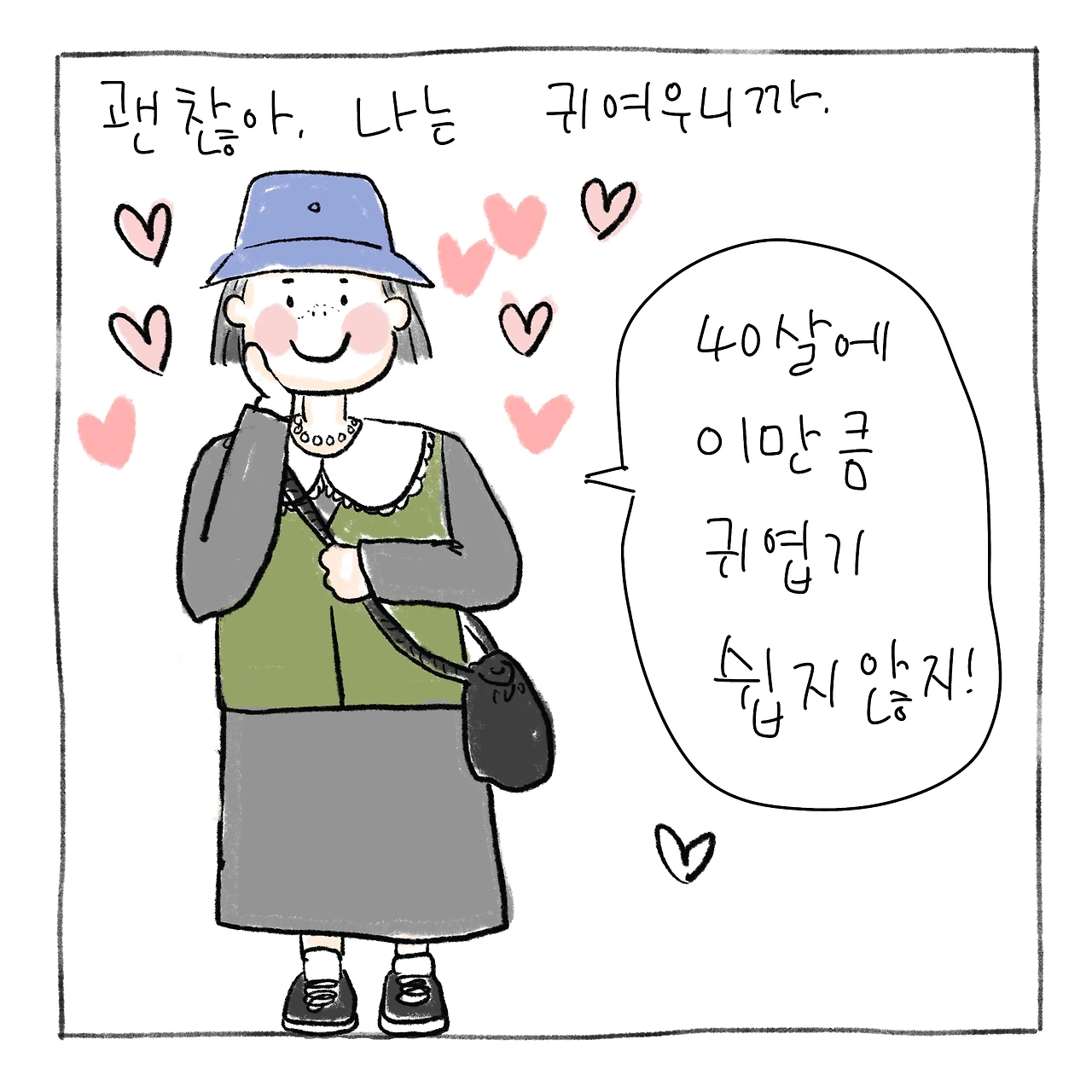 ”40살에 이만큼 귀엽기 쉽지 않지!“