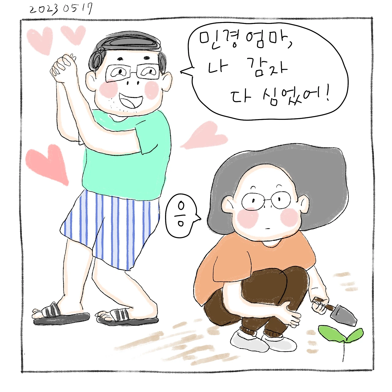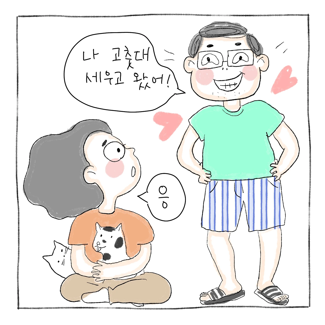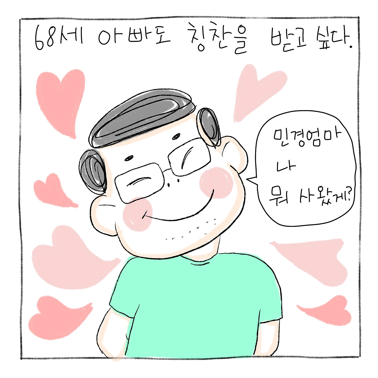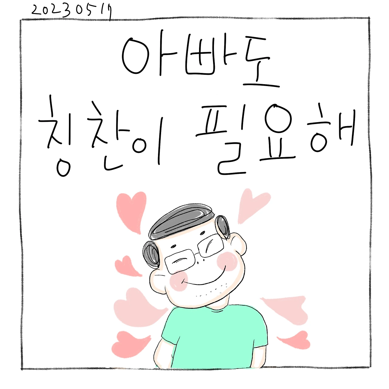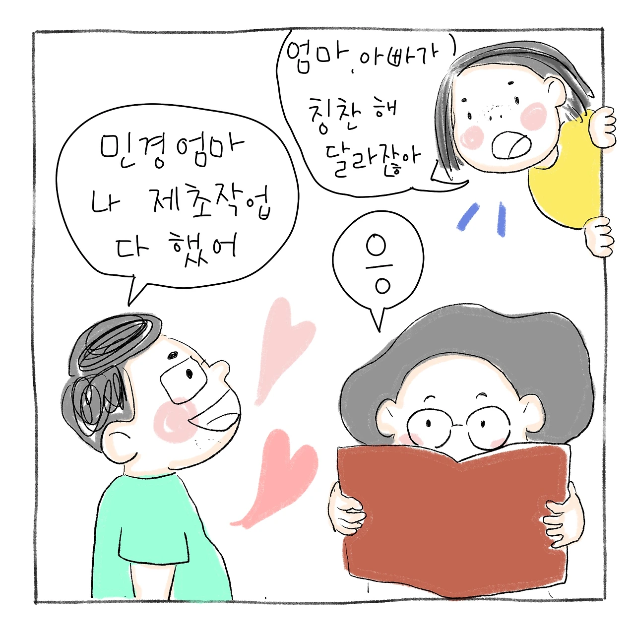 “엄마, 아빠가 칭찬해 달라잖아.”