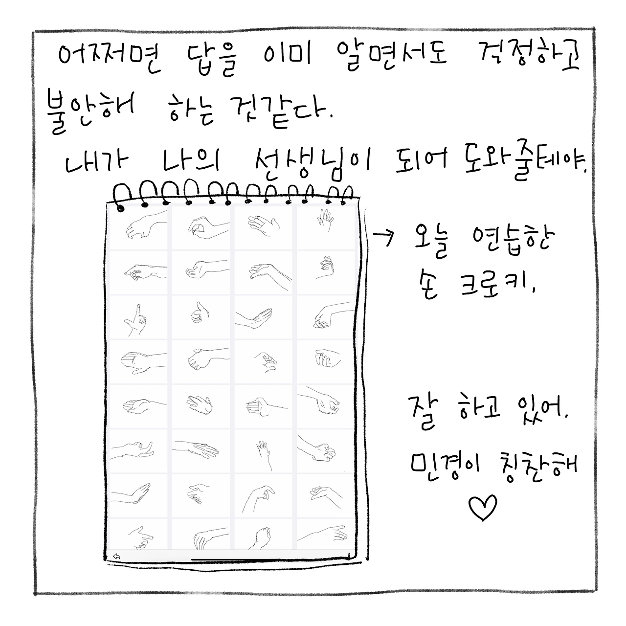 “많이 그리는 게 답이야. 크로키를 많이 하렴.”