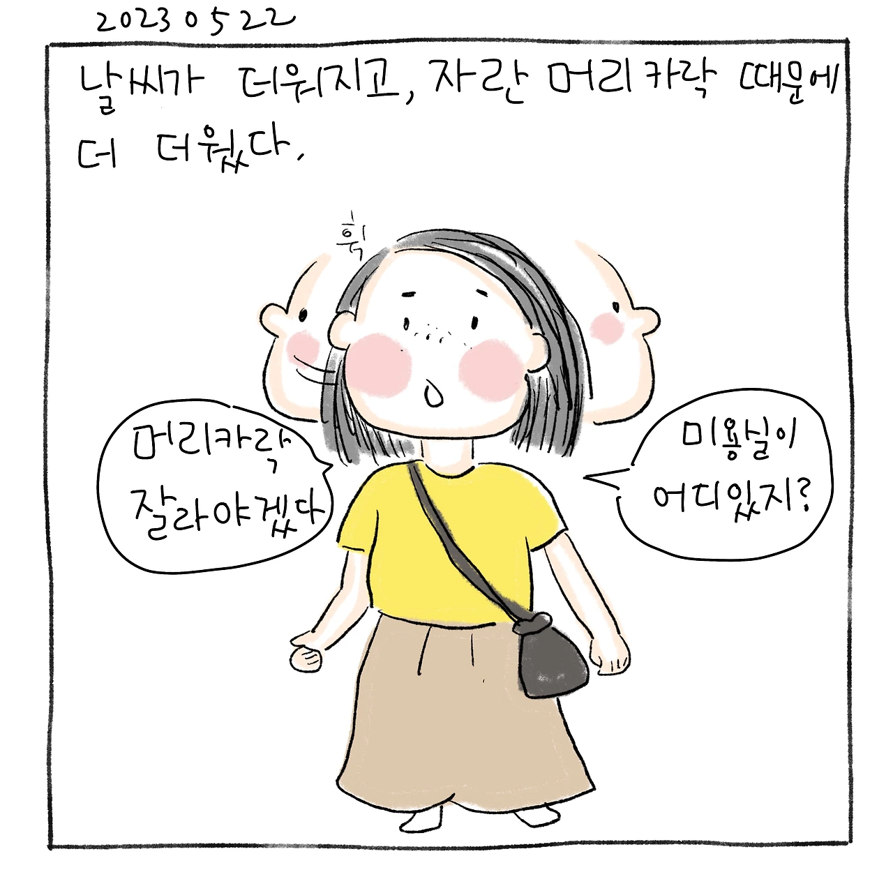 날씨가 더워지고 , 자란 머리카락 때문에 더 더웠다.