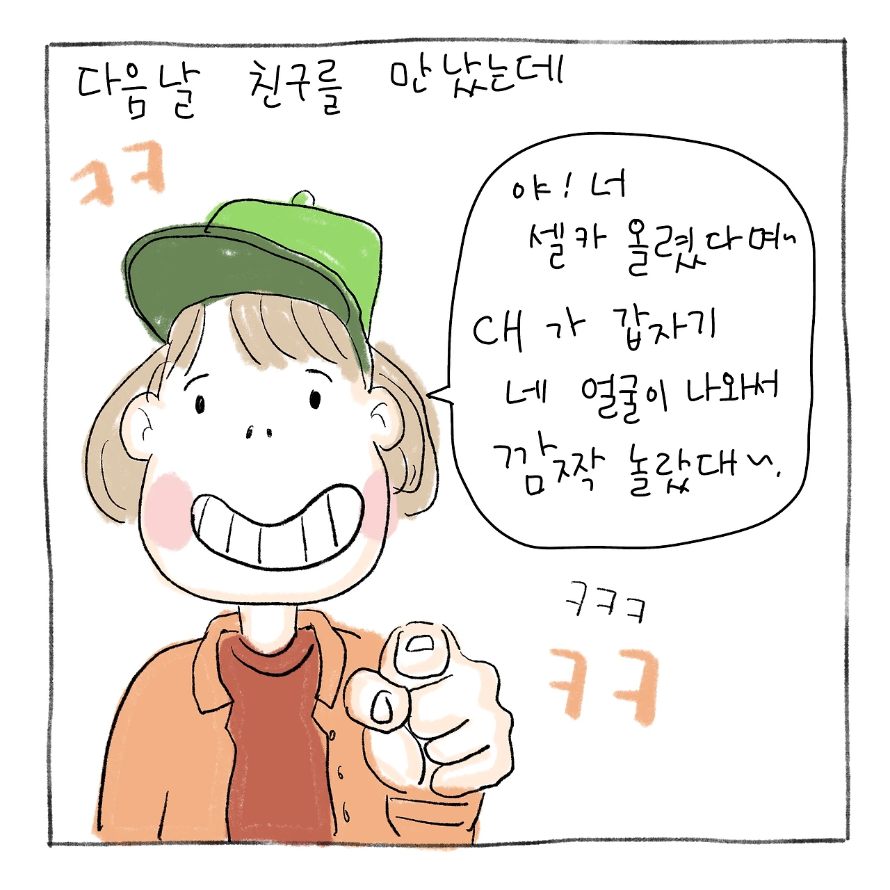 “야 ! 너 셀카 올렸다매 ! Ch가 갑자기 너 셀카가 나와서 깜짝 놀랐대!“