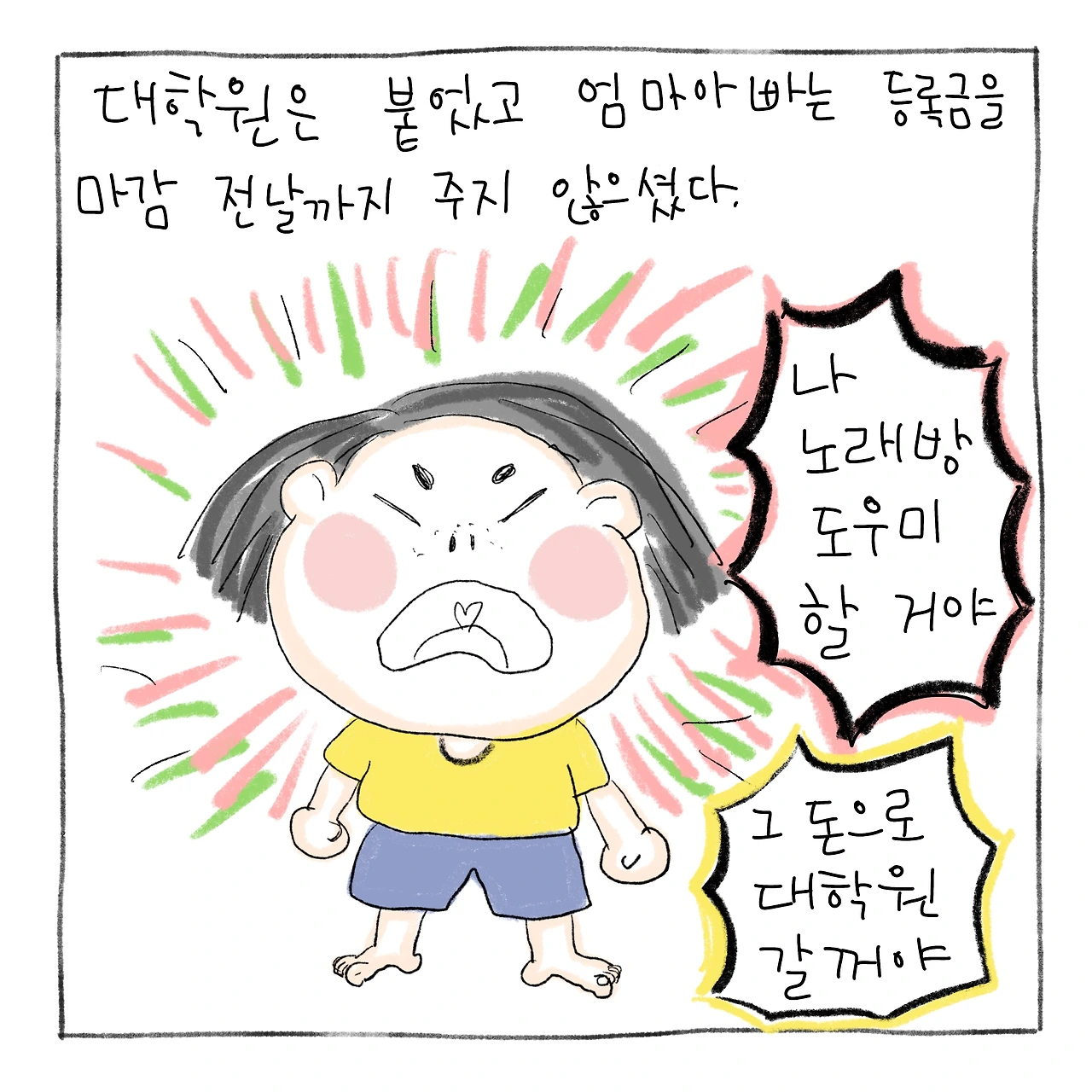 대학원은 붙었고 엄마아빠는 등록금을 마감 전날까지 주지 않으셨다. 나는 화가 났다.