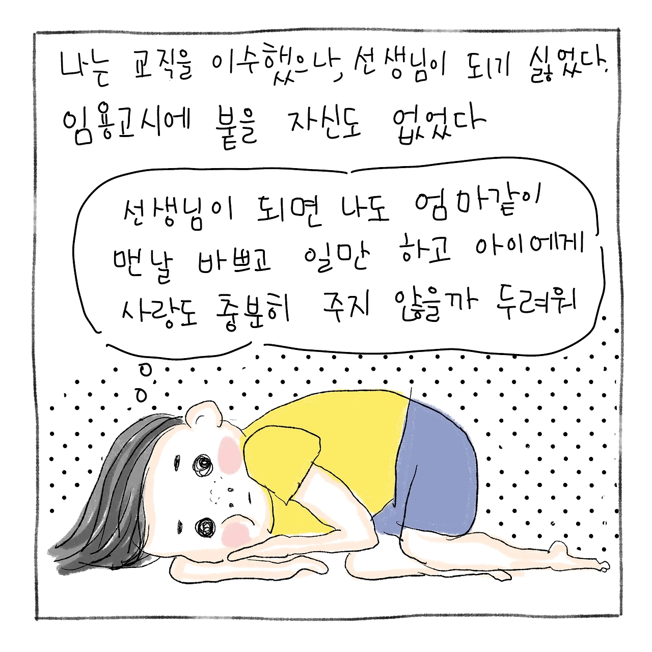 ”선생님이 되면 나도 엄마같이 맨날 바쁘고 일만 하고 아이에게 사랑도 충분히 주지 않을까 두려워..“