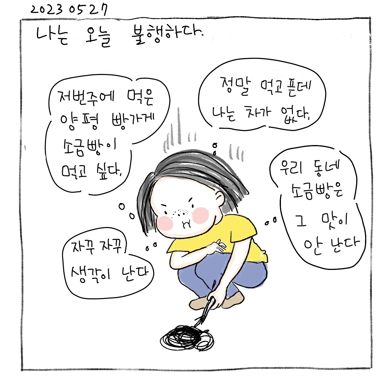 “저번주에 양평에서 먹은 소금빵이 먹고싶다..자꾸 자꾸 생각이 난다..정말 먹고픈데 나는 차가 없다..우리 동네 소금빵은 그 맛이 안 난다.”
