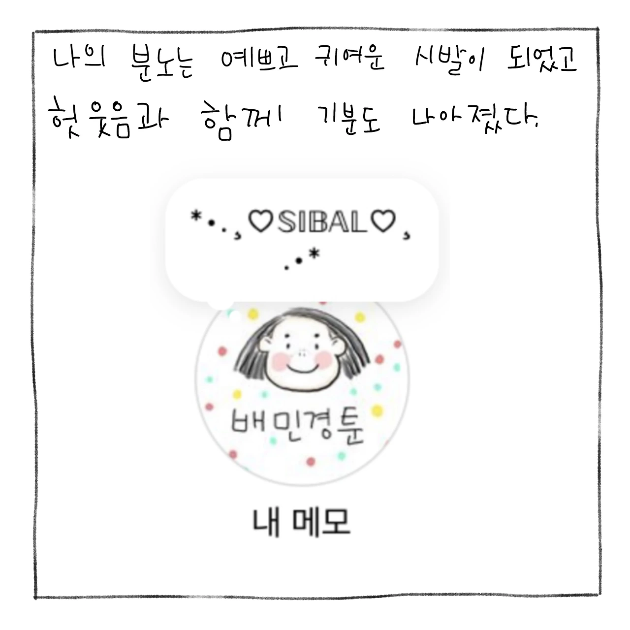 나의 분노는 예쁘고 귀여운 시발이 되었고 헛웃음과 함께 기분도 나아졌다.