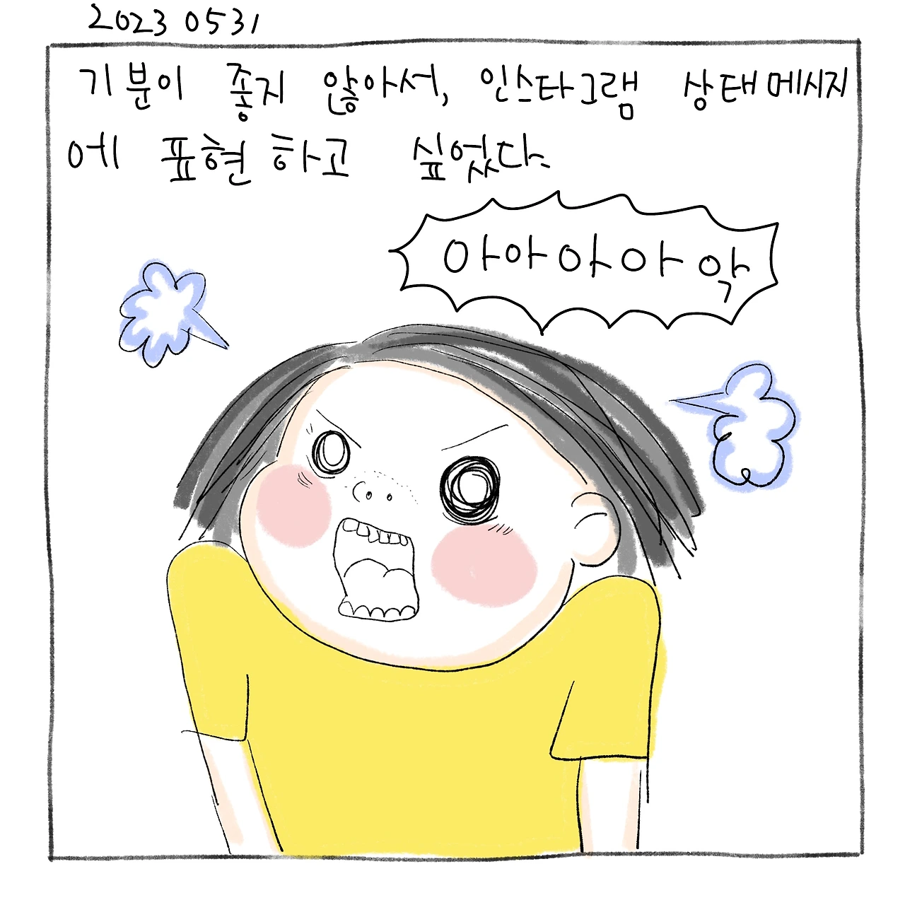 기분이 좋지 않아서 인스타그램 상태 메시지에 표현하고 싶었다.