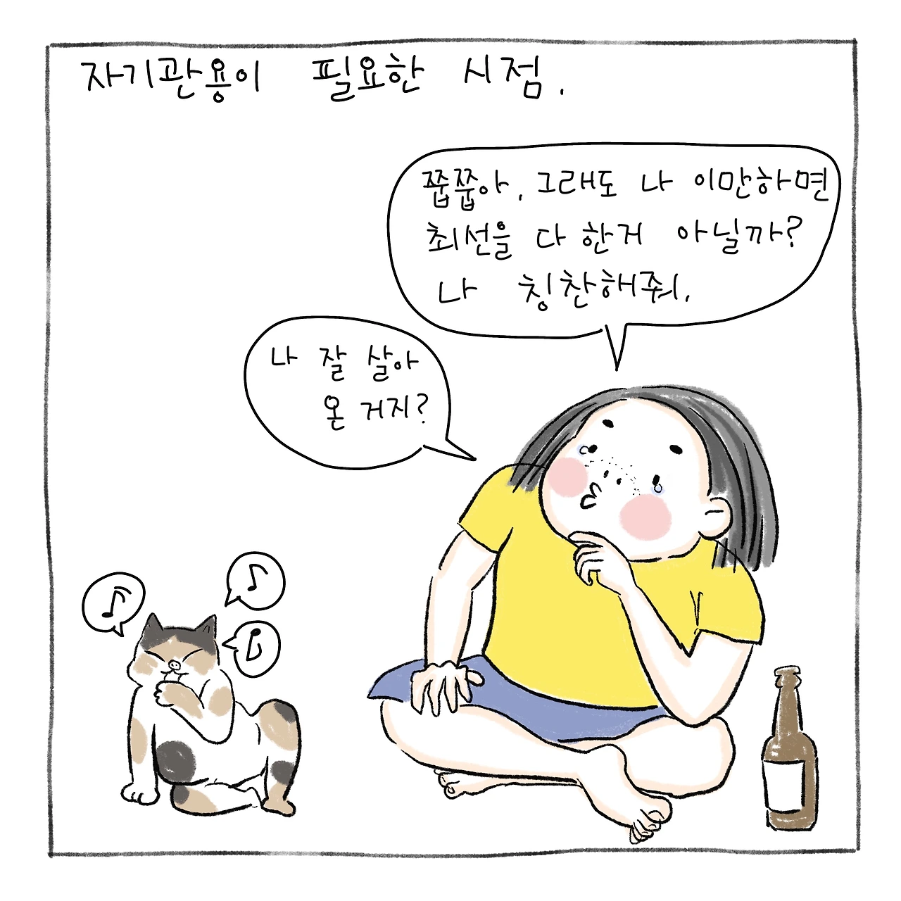 “쭙쭙아, 그래도 나 이만하면 최선을 다 한 것 아닐까? 칭찬해줘. 나 잘 살아 온 거지?”