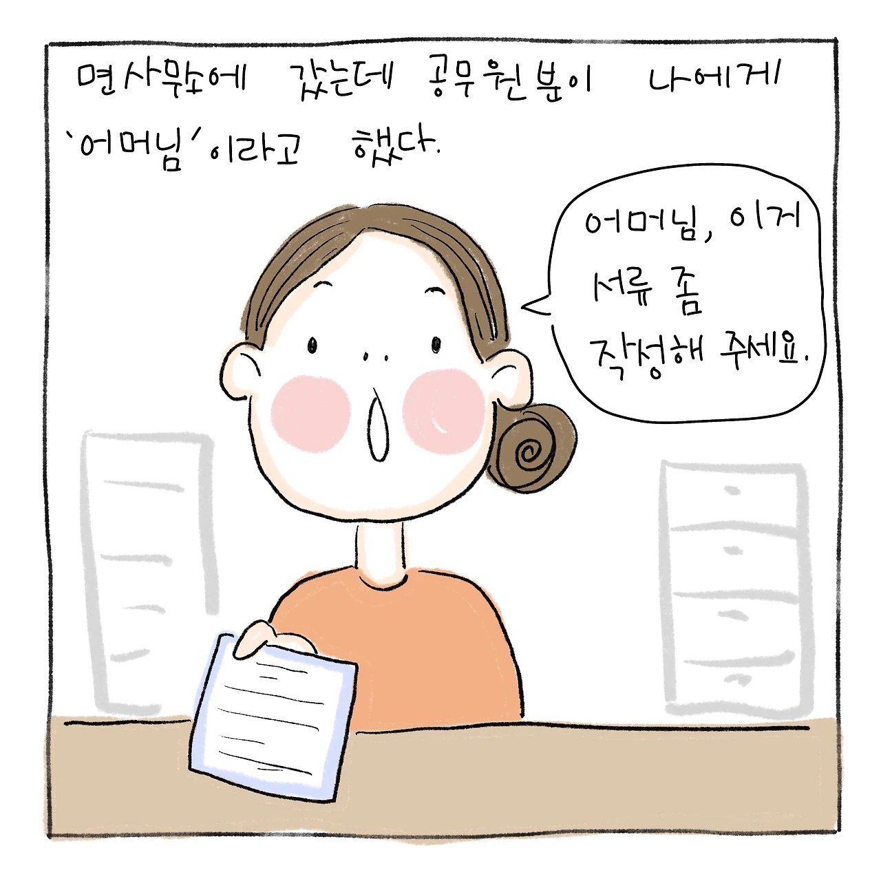 면사무소에 갔는데 거기 공무원이 나에게 ‘어머님’이라고 했다.