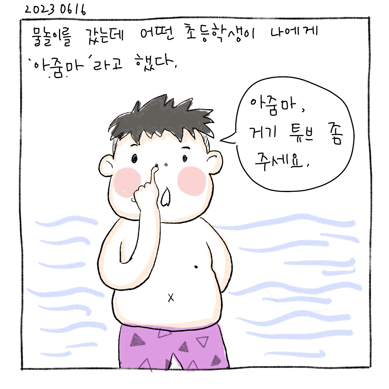 물놀이를 갔는데 거기 있는 초등학생이 나에게 아줌마라고 했다.